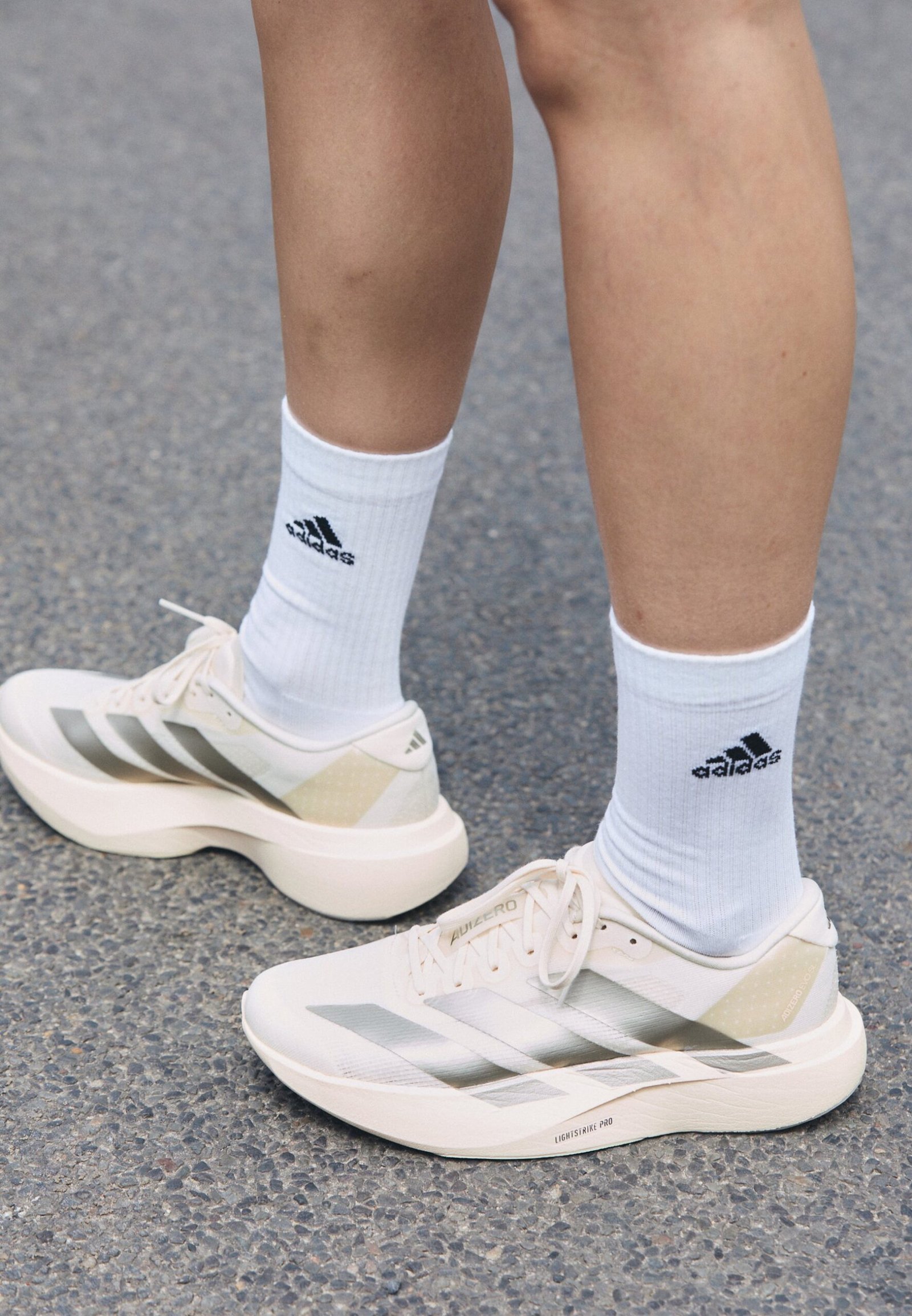 ADIZERO EVO SL W – Chaussures de running sur route – white/cyber metallic/warm vanilla