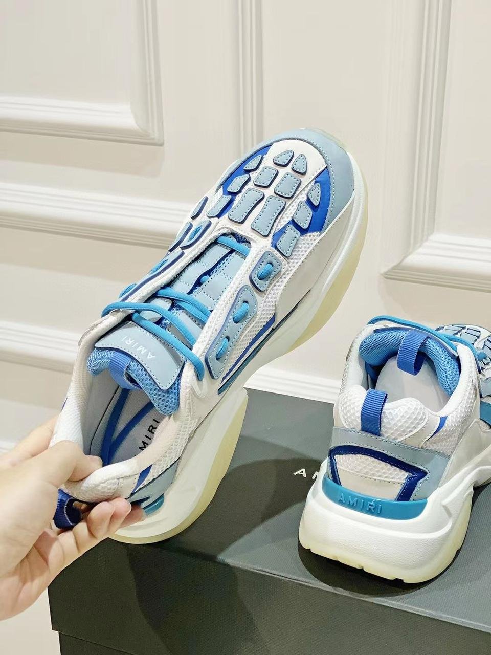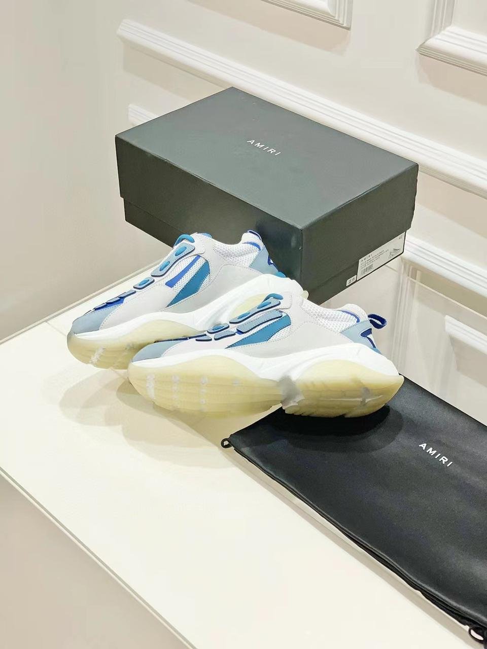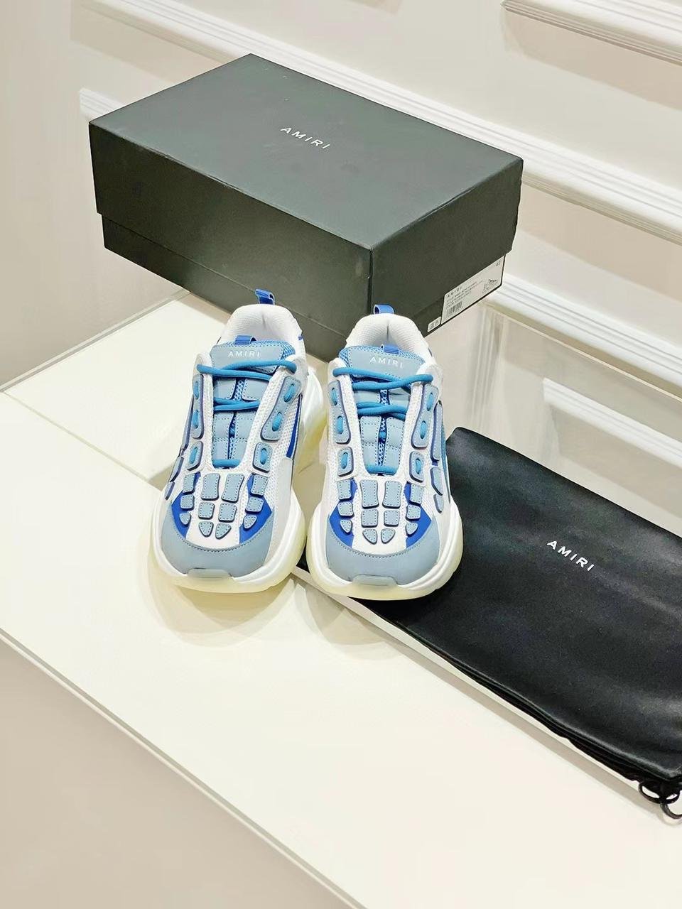 AMIRI || BASKETS BONE RUNNERS BLANC/BLEUAMIRI || BASKETS BONE RUNNERS BLANC/BLEU