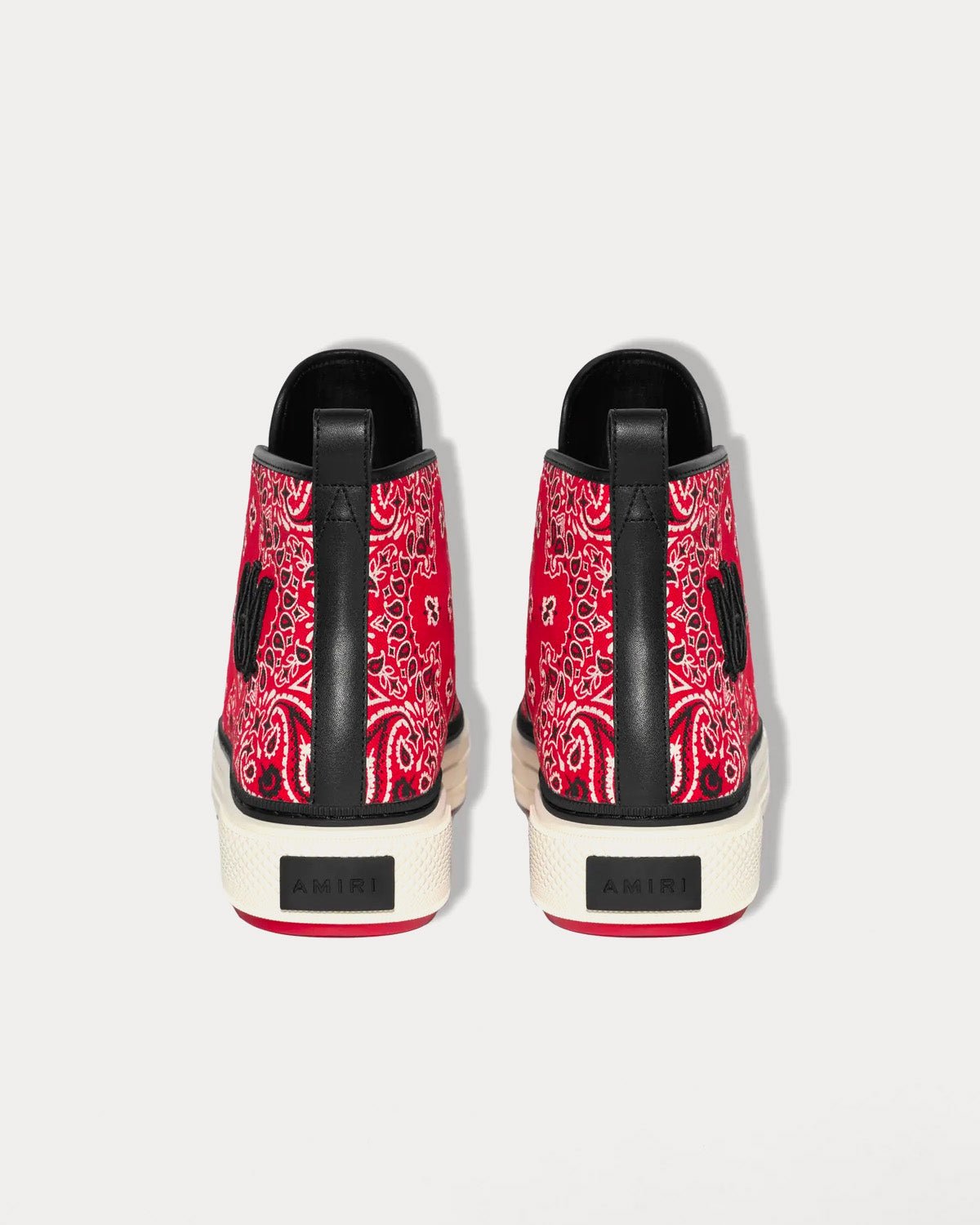 Baskets montantes Amiri de la collection automne-hiver 2022. Toile imprimée avec motif bandana classique. Toile et cuir nappa.