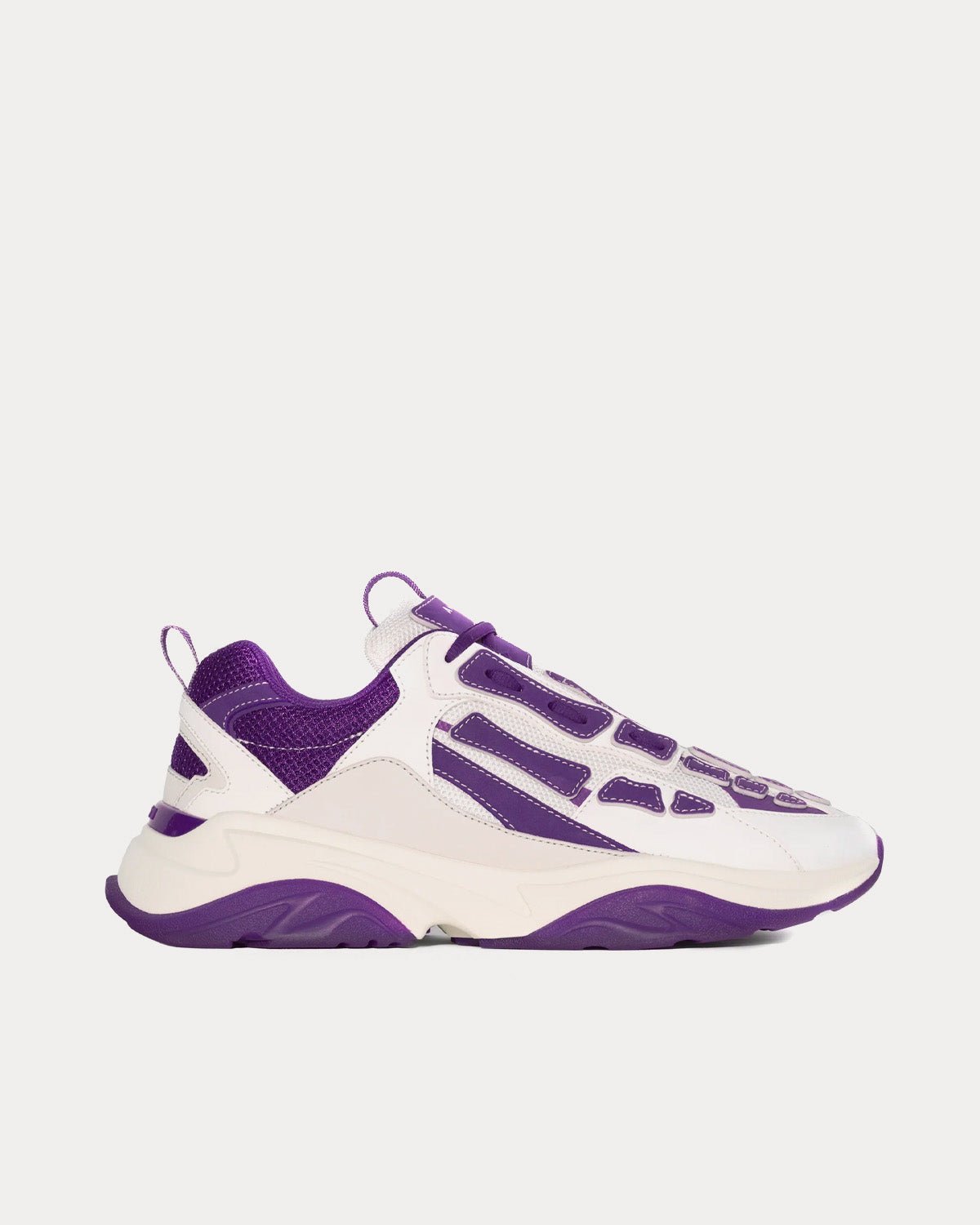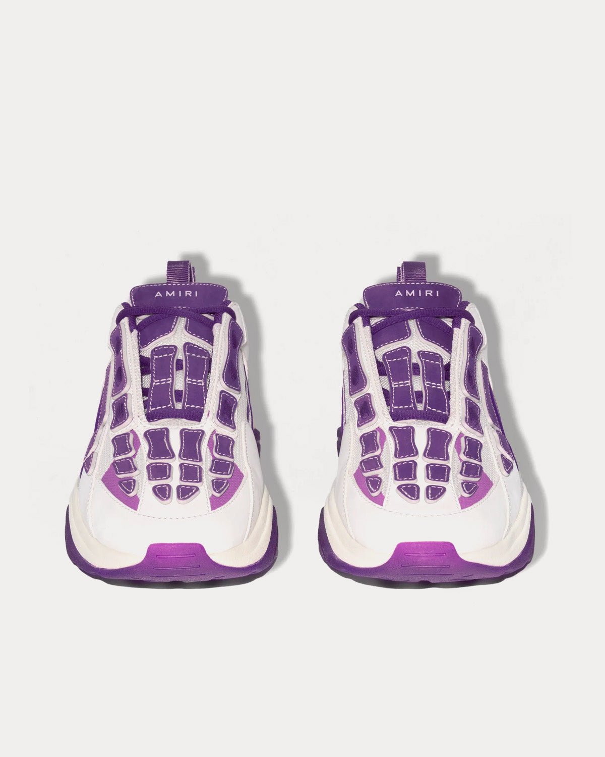 Les baskets basses pour hommes AmiriBone Runner en violet et blanc sont inspirées des baskets de style sportif rétro et présentent un logo estampé métallique sur la languette avant, une applique en cuir squelette classique découpée et cousue à la main et une tige en daim Vesuvio.