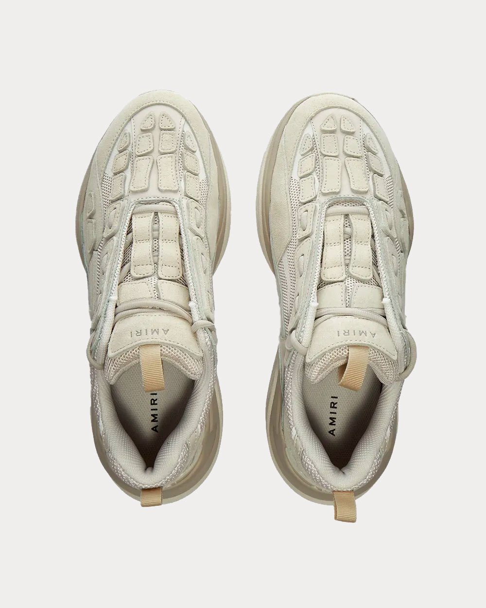 La Bone Runner d’AMIRI s’inspire fortement des baskets épaisses, mais avec un style beaucoup plus gothique. Prenez celle-ci : elle est entièrement colorée dans de subtiles nuances de gris, qui recouvrent tout, de la tige squelettique à la semelle surdimensionnée.