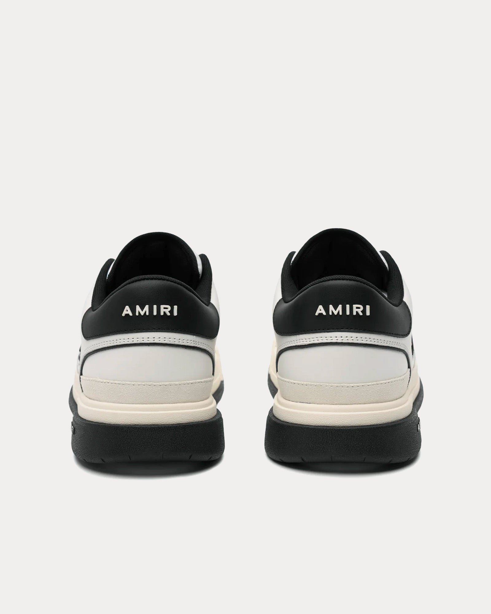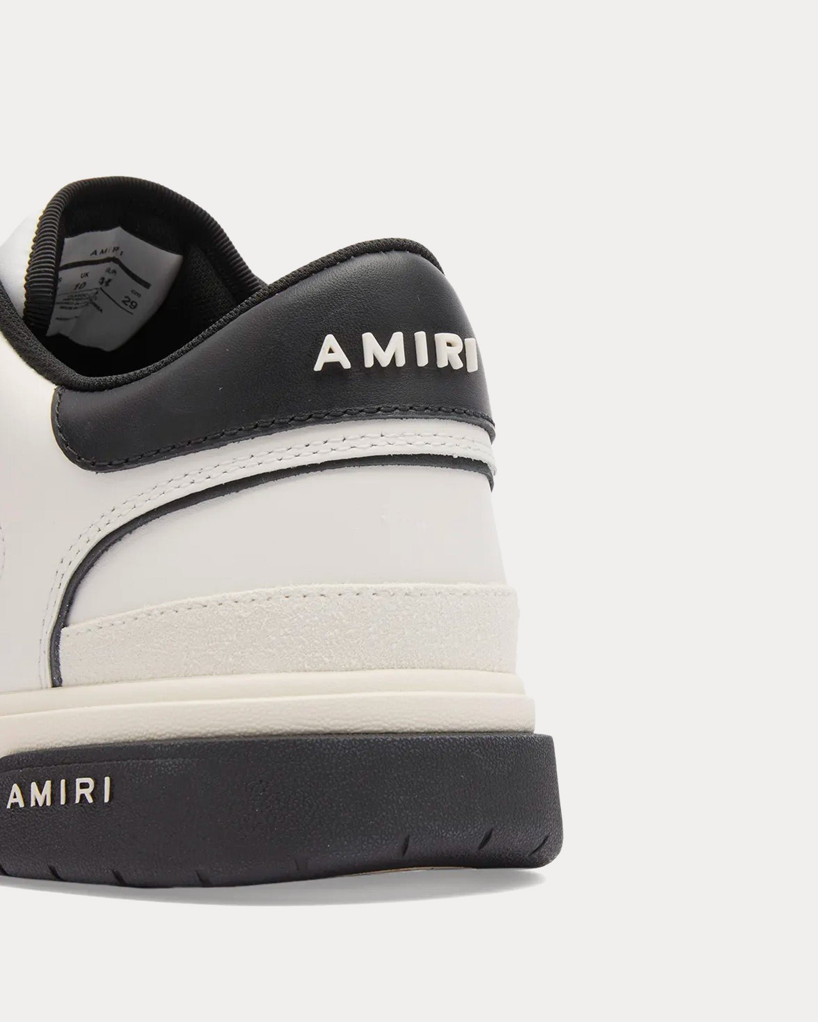 Les baskets basses pour hommes AmiriClassic en blanc et noir s’inspirent des baskets de tennis et présentent des tiges en cuir avec des panneaux centraux en maille de caoutchouc moulé, le logo décalé Amiri avec des perforations en étoile emblématiques et des semelles en caoutchouc bicolores.