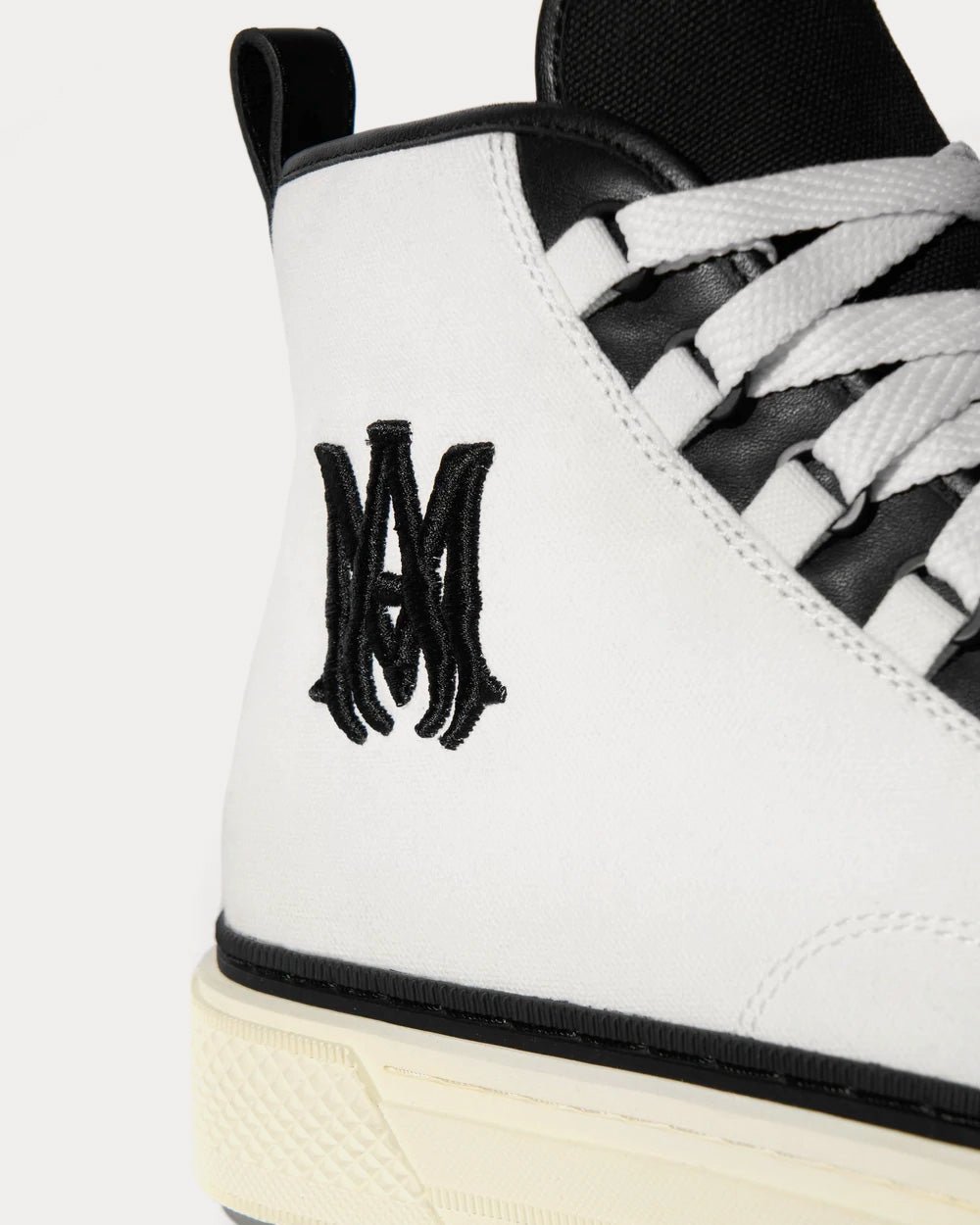 Les baskets montantes Amiri M.A. Court High Black / White sont fabriquées en toile avec une languette en cuir et une semelle double épaisseur.