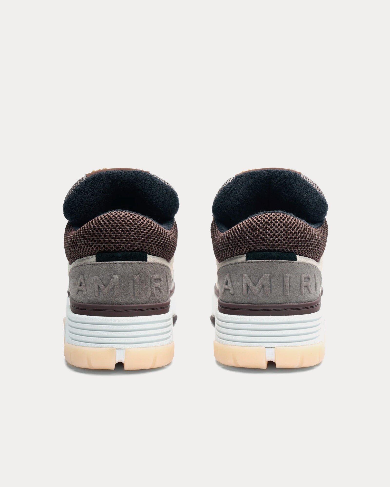 Les baskets basses pour hommes AmiriMA-1 en marron présentent une tige en nubuck, en mesh et en cuir, un logo Amiri sur le côté et des semelles en caoutchouc. Fabriquées en Chine.