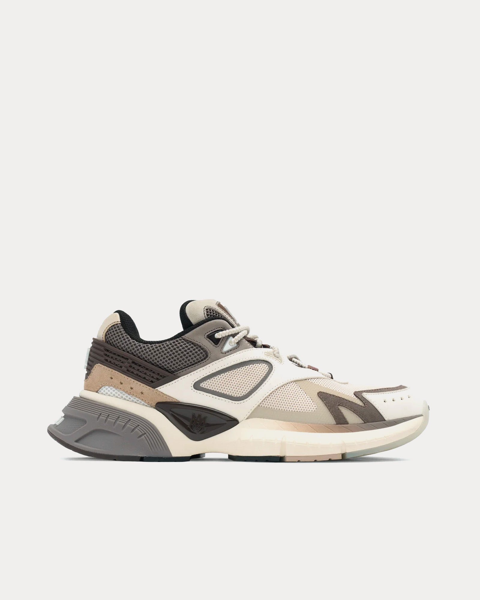 Les baskets basses pour hommes AmiriMA Runner en marron sont fabriquées en cuir et polyester et présentent un design classique inspiré des années 90, une tige en mesh respirant, des détails en cuir et en daim et des semelles en caoutchouc sculptées. Une partie de la collection Amiri pré-printemps 2024.