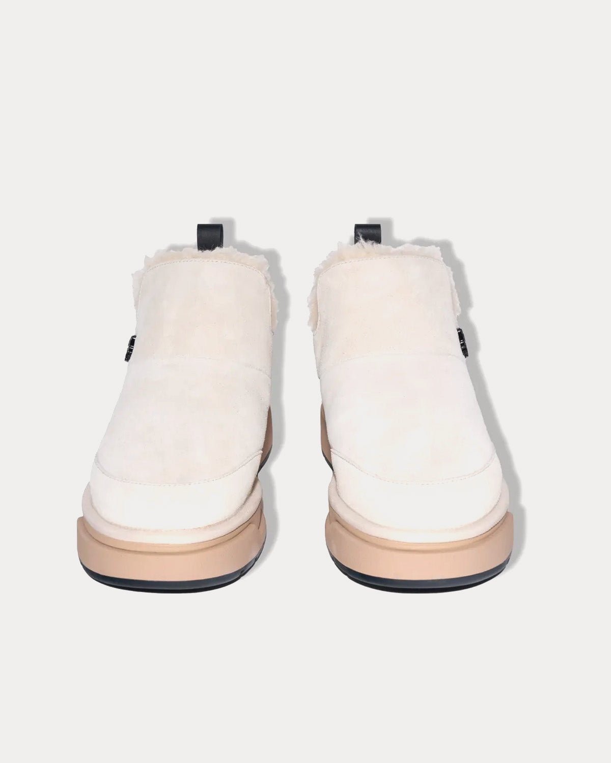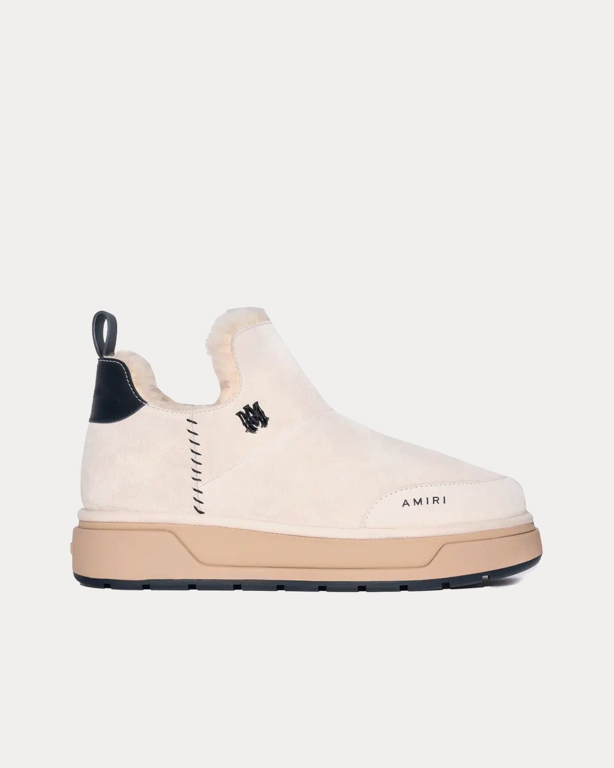 Bottines à enfiler Amiri Malibu, coloris albâtre, en daim et peau lainée. Collection PS23.