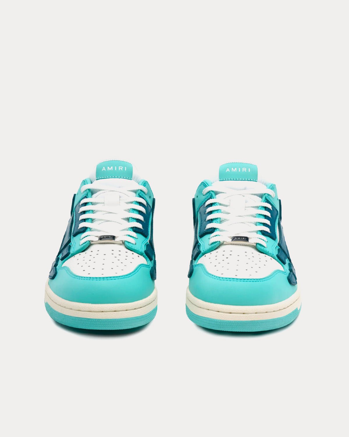 Les baskets basses pour hommes AmiriSkel-Top dans un coloris bleu aqua de la collection PF23 sont fabriquées en cuir avec un effet squelette sur la tige, avec le logo Amiri sur le bas des semelles en caoutchouc. Fabriquées en Chine.