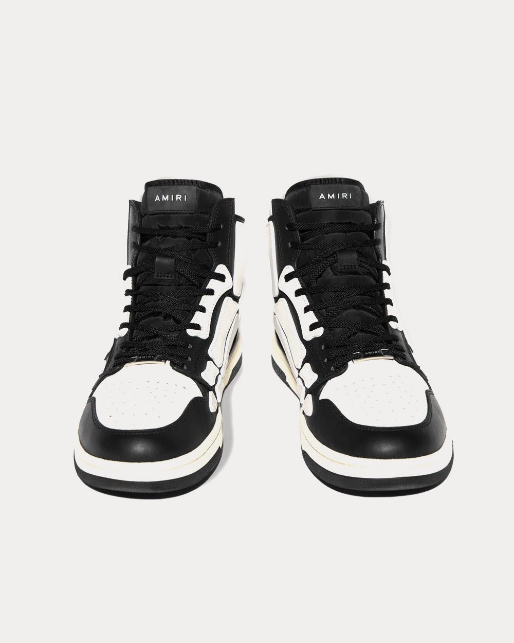 Les baskets montantes Amiri Skel-Top Hi noires/blanches sont découpées à la main avec des applications en cuir peint sur les bords, une tige en cuir véritable et une semelle intérieure moulée en EVA.