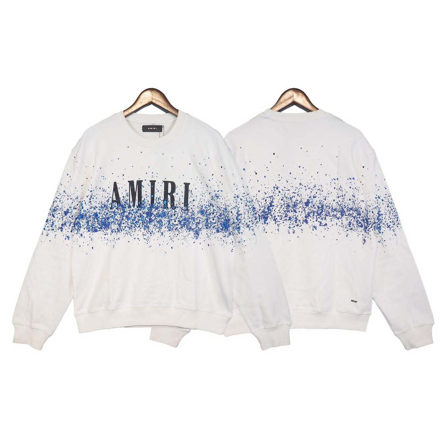 AMIRI || Sweat-shirt blanc à col rond et imprimé peinture