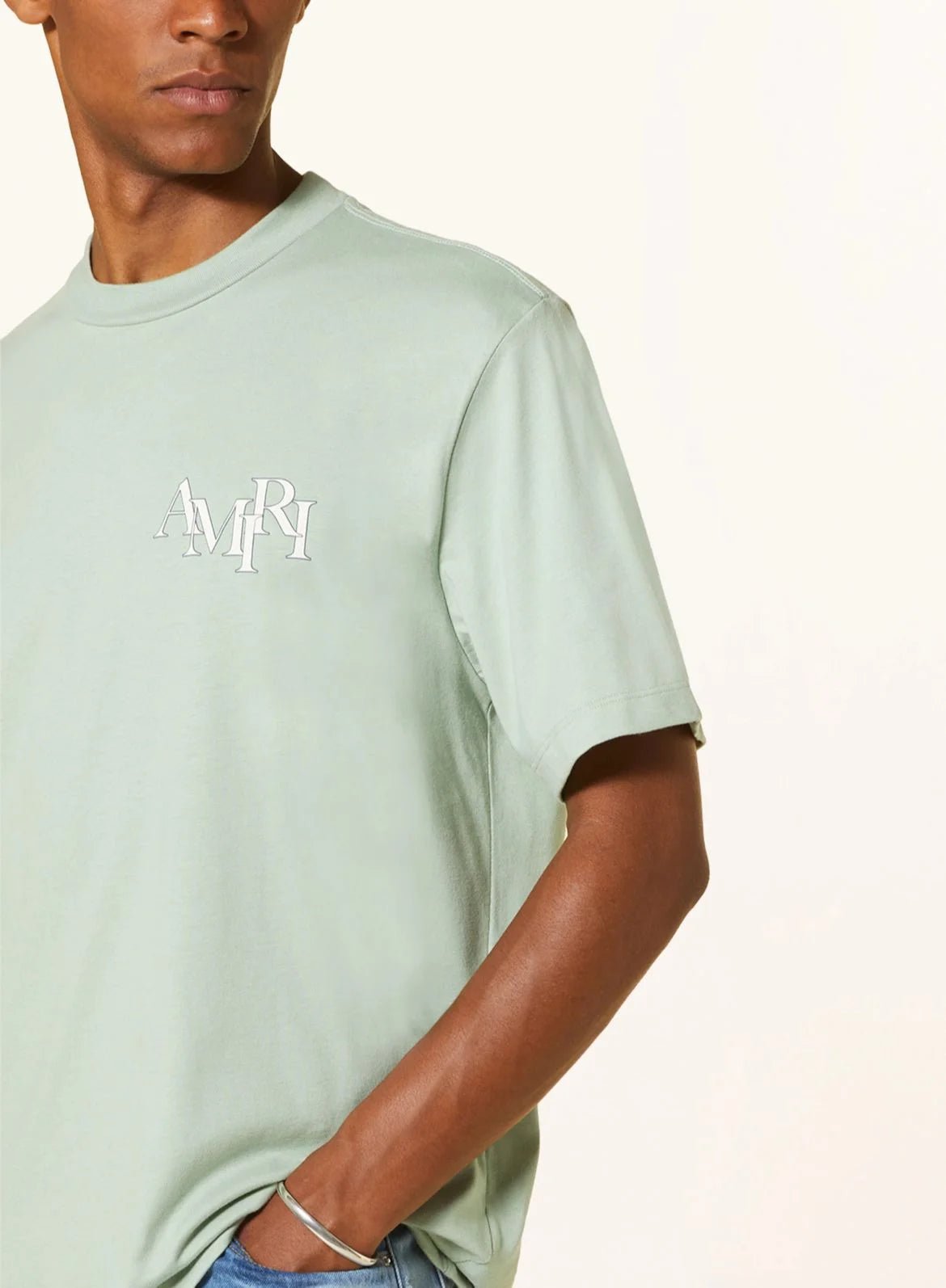 Rehaussez votre garde-robe avec le t-shirt vert à logo décalé AMIRI pour homme. Fabriqué avec des matières de qualité, ce t-shirt arbore l’emblématique logo AMIRI dans un élégant motif décalé. Affichez votre sens de la mode tout en restant confortable avec cet incontournable pour tout homme à la pointe de la mode.
