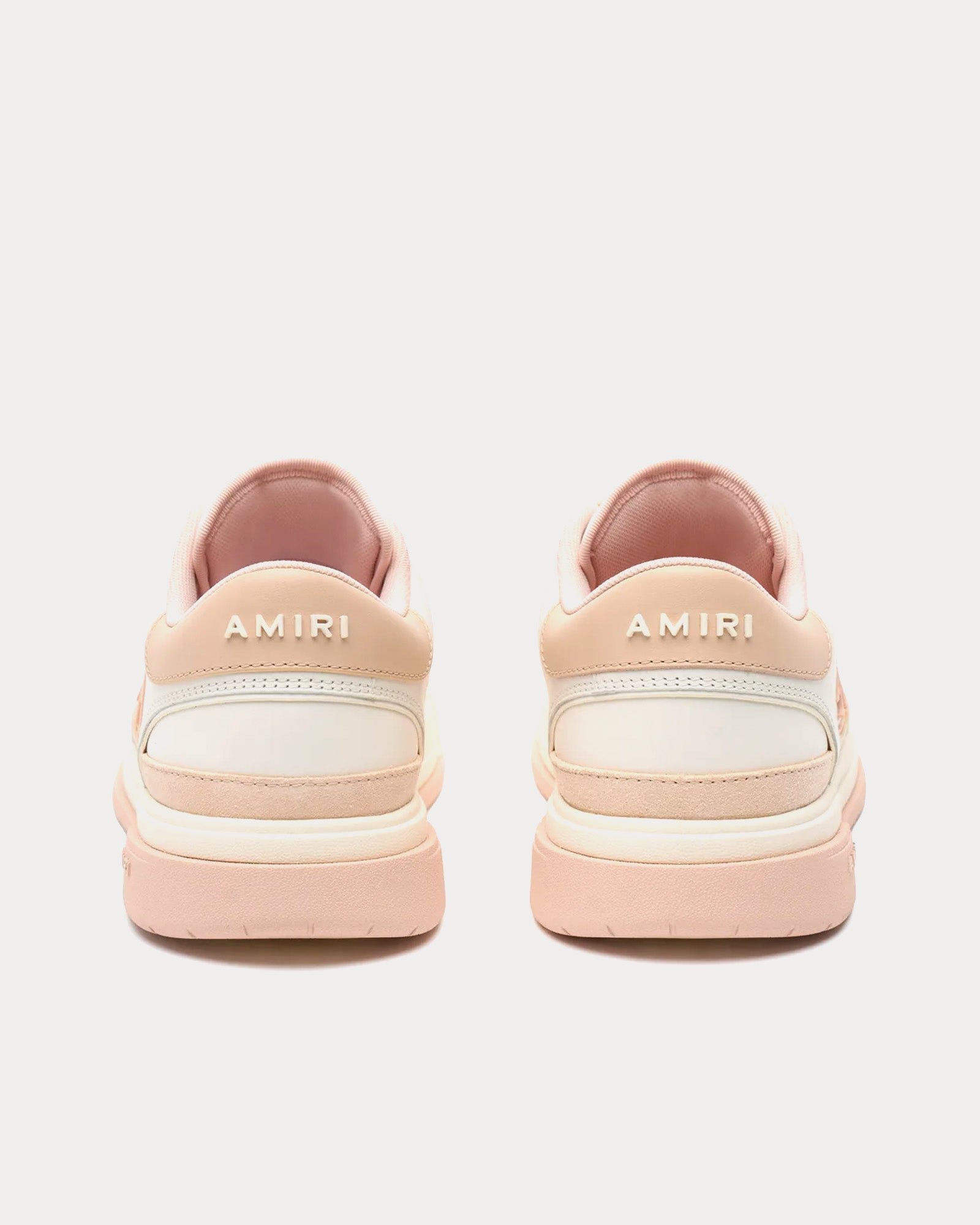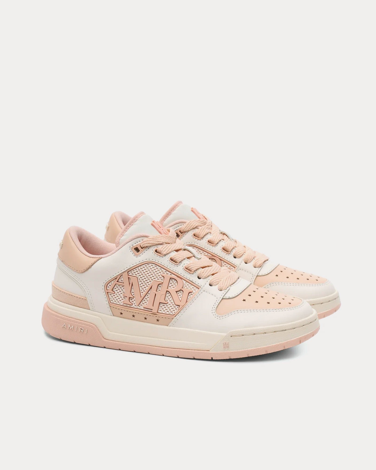 Les baskets basses pour femmes Amiri Classic en blanc et rose sont inspirées des baskets de tennis et présentent des tiges en cuir avec des panneaux centraux en maille de caoutchouc moulé, le logo décalé Amiri avec des perforations en étoile emblématiques et des semelles en caoutchouc bicolores.
