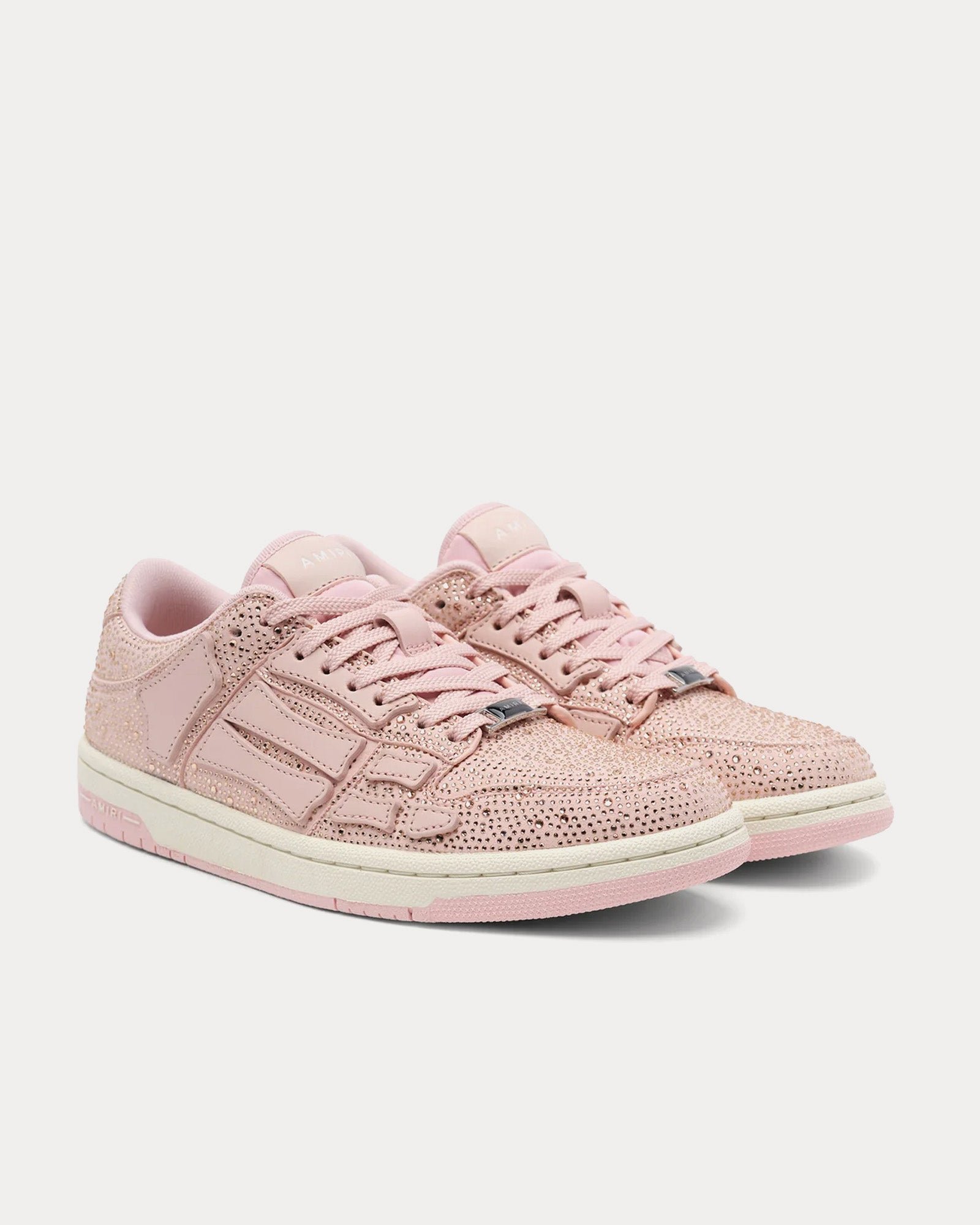 Les baskets basses pour femmes Amiri Crystal Skel-Top de couleur rose sont fabriquées en cuir et présentent un effet squelette en cristal sur la tige, avec le logo Amiri sur le dessous des semelles en caoutchouc.