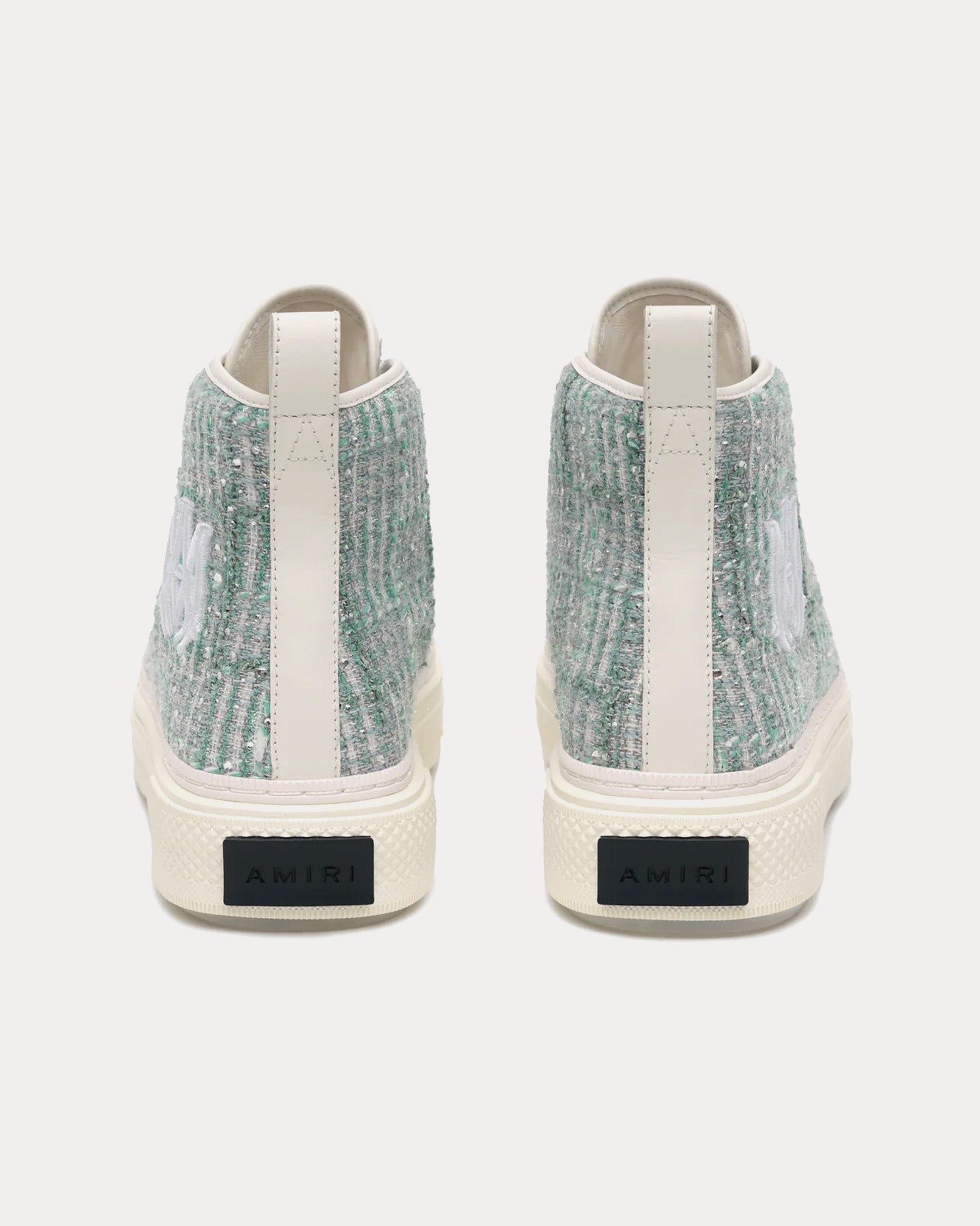 Les baskets montantes pour femmes AmiriMA Court Boucle Crystal en gris sont fabriquées en boucle et présentent des cristaux qui captent la lumière sur la tige, des semelles extérieures en caoutchouc moulé à double empilement, le logo Amiri sur les côtés et des embouts en caoutchouc.