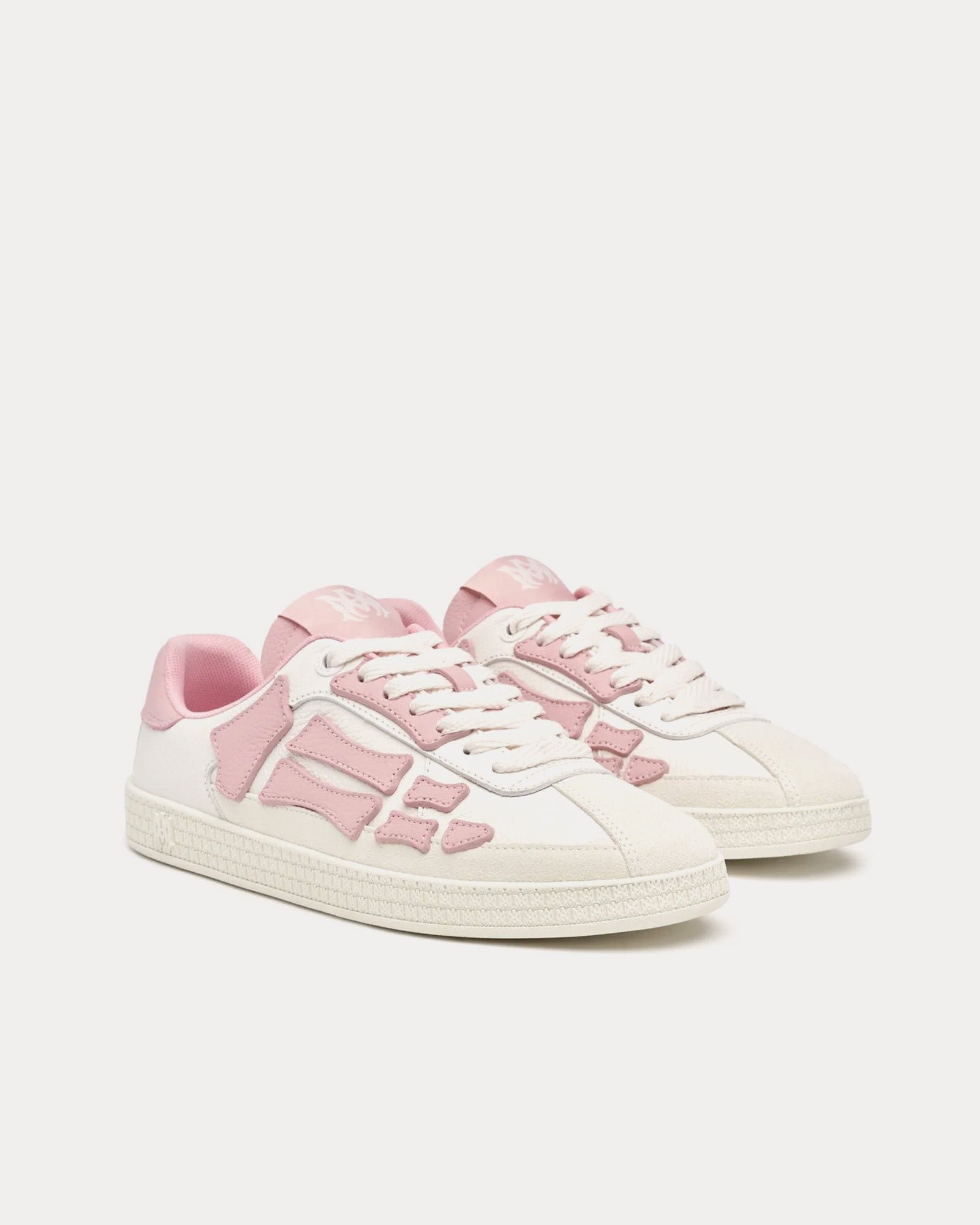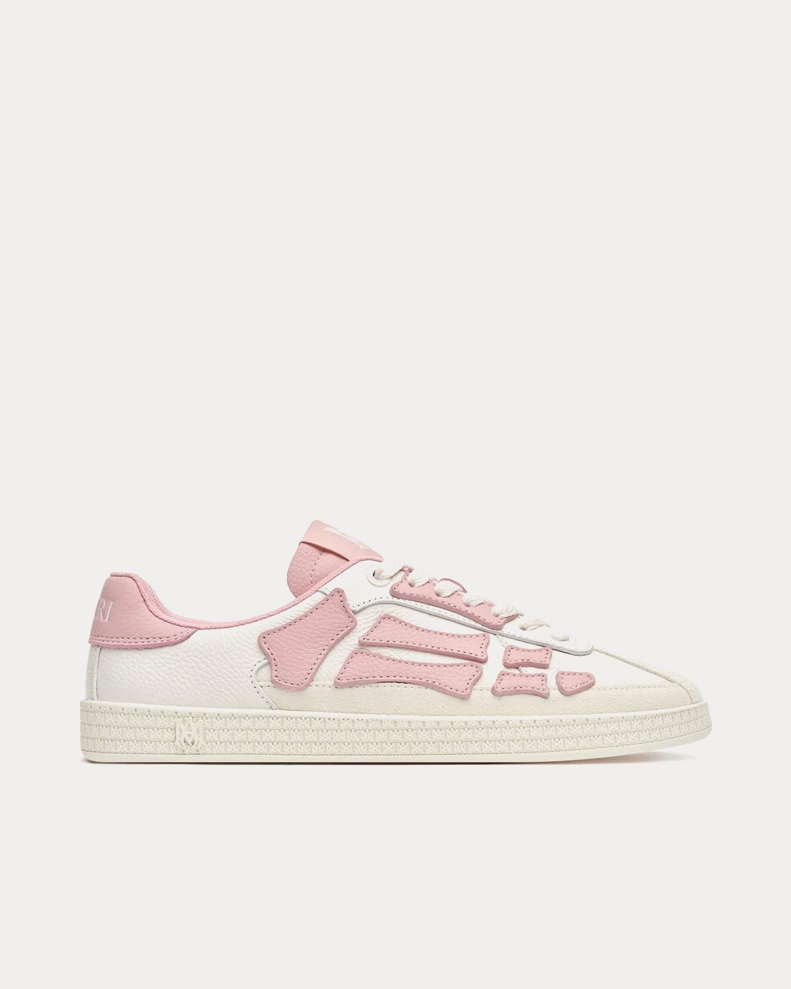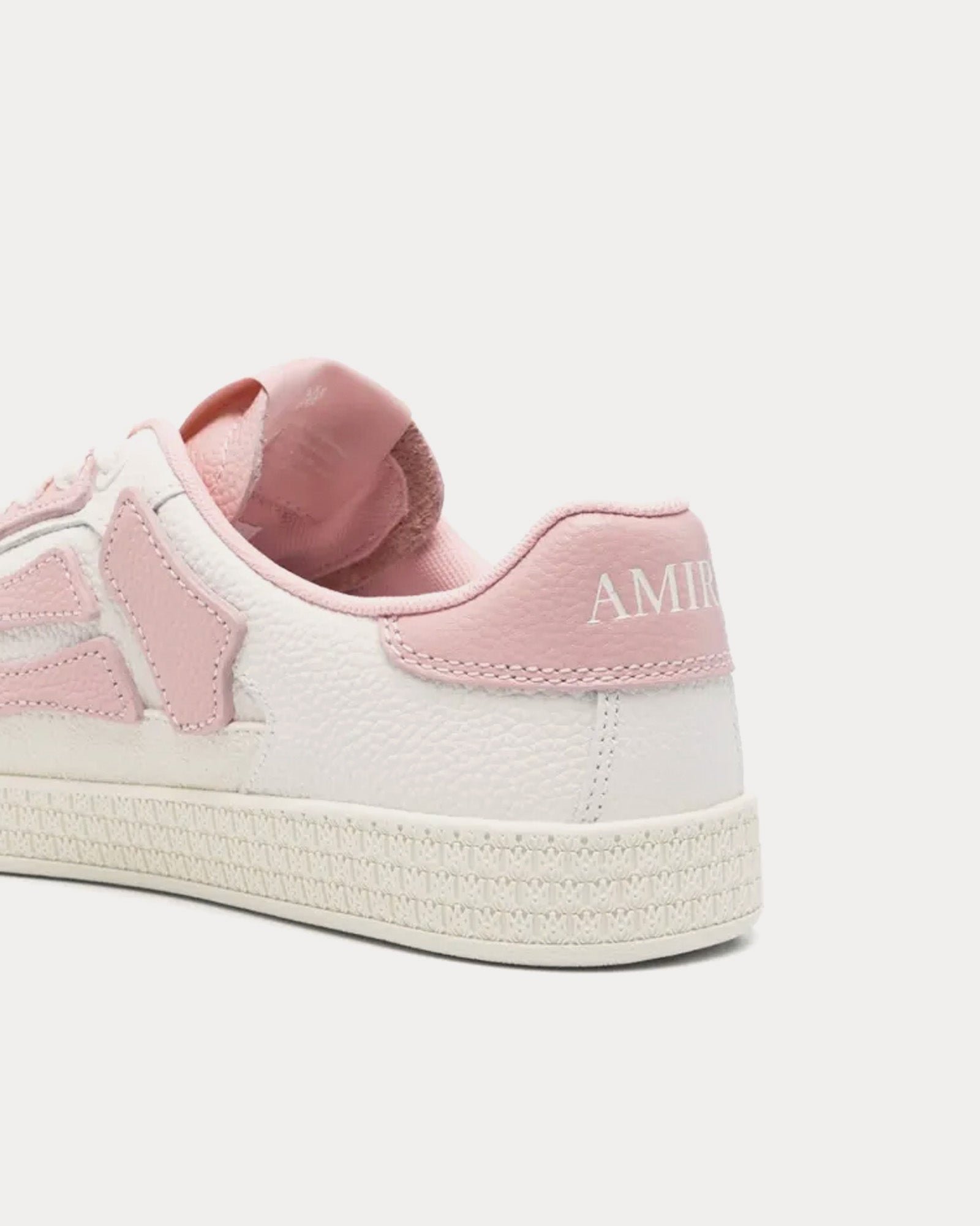Les baskets basses pour femmes Amiri Pacific Bones en blanc et rose vintage réinventent une icône de la maison avec des détails audacieux et emblématiques. Faisant partie de la collection printemps-été 2025, cette itération de la sneaker Pacific allie des influences sportives classiques à l’esthétique street-luxe emblématique d’Amiri.