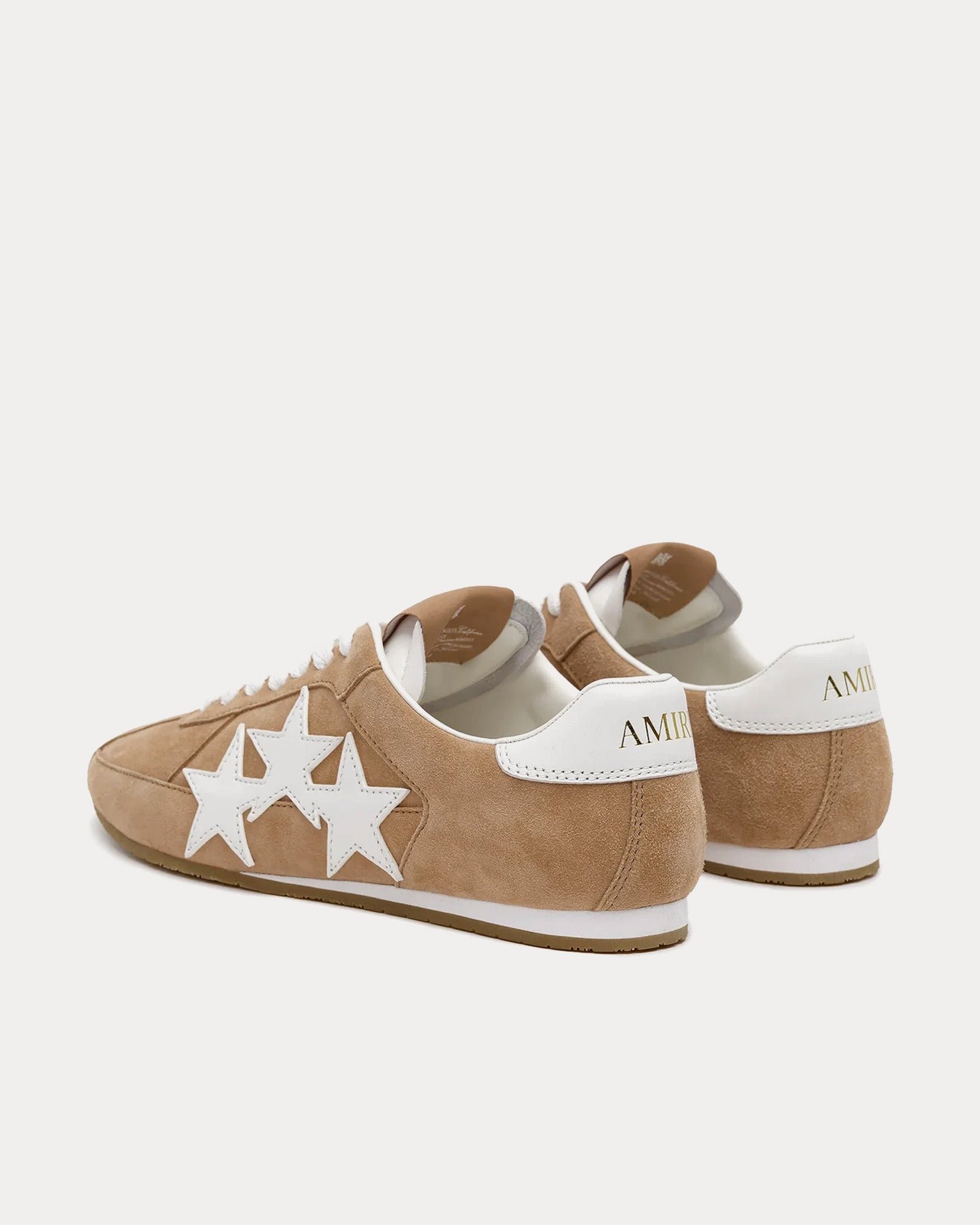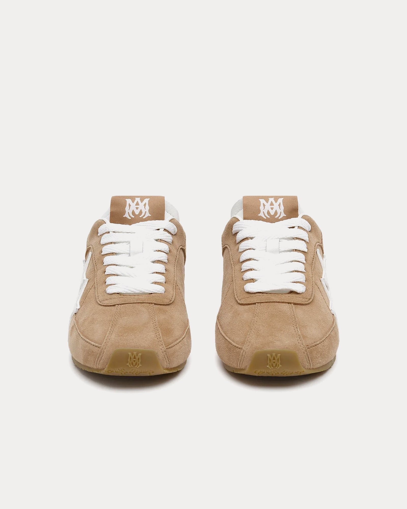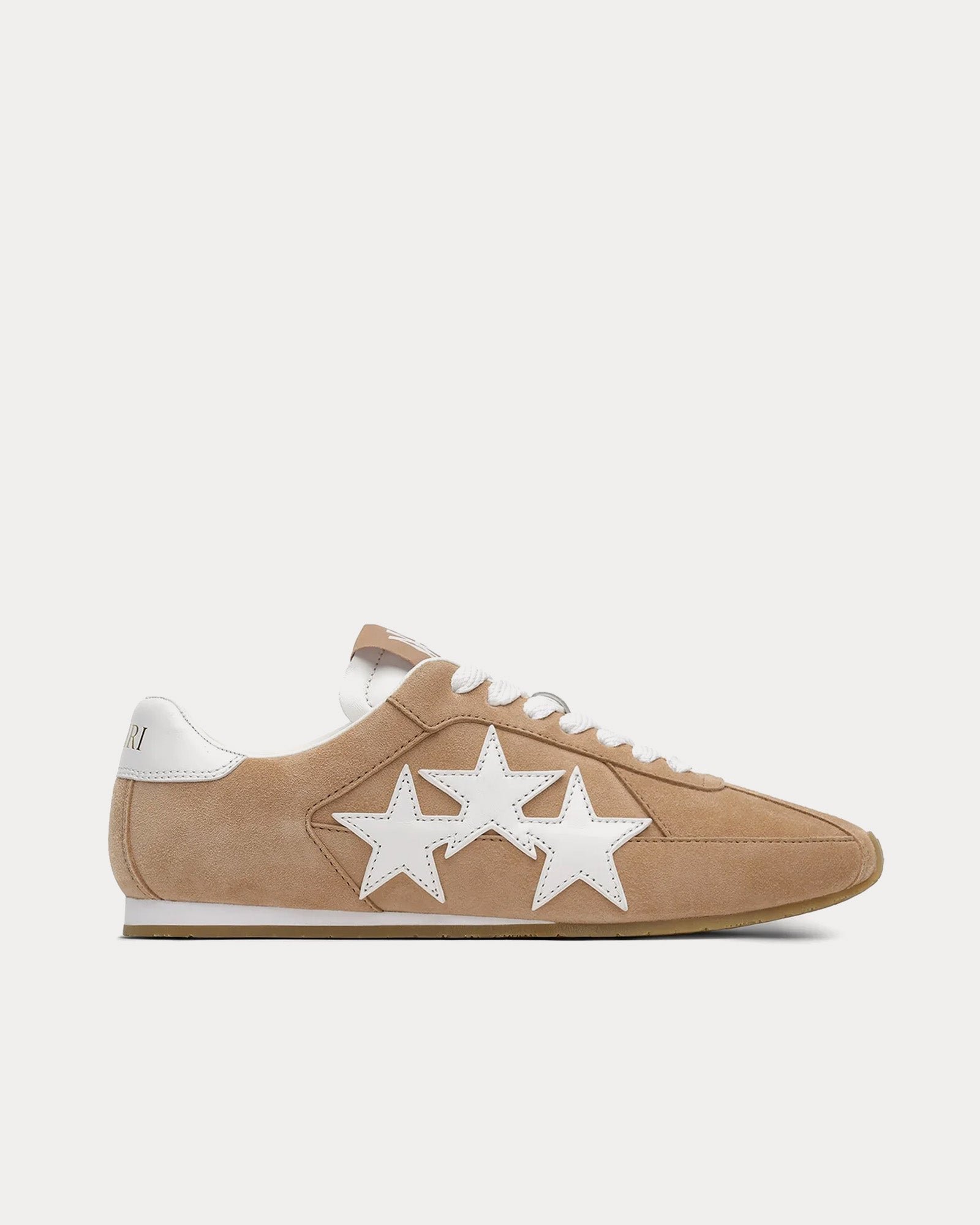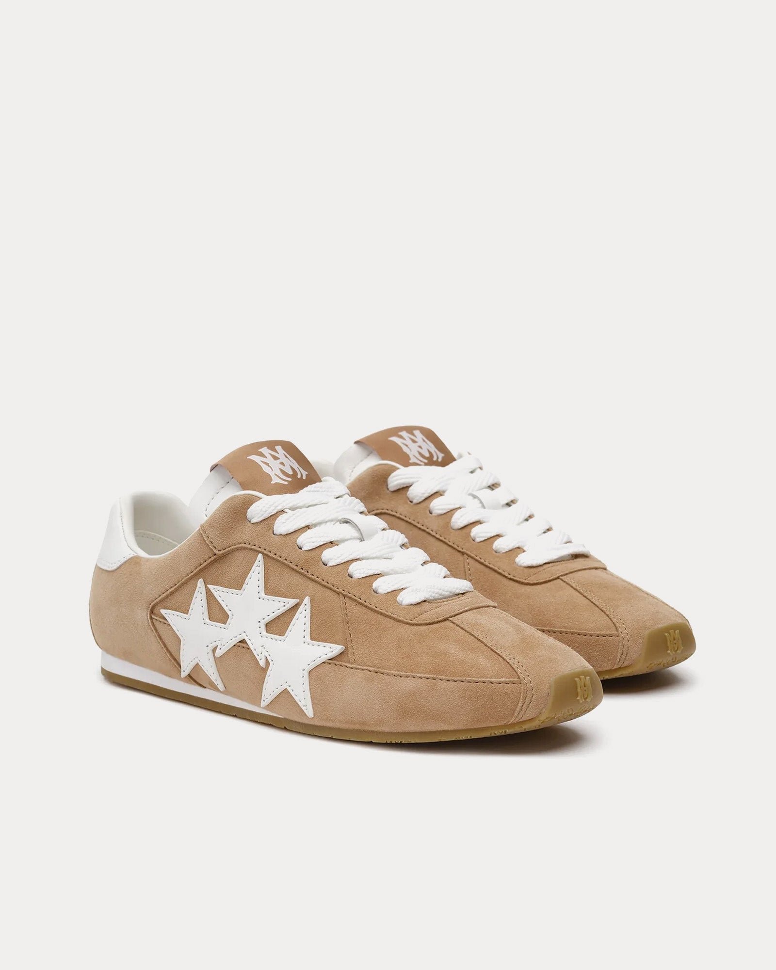 Les baskets Amiri Les baskets Pacific Flat pour femmes de couleur camel rehaussent une silhouette athlétique classique avec des détails modernes et luxueux. Présentées dans la collection pré-automne 2025, les Pacific Flat sont fabriquées sur une semelle minimaliste avec une tige en daim lisse et l’appliqué trois étoiles emblématique de la maison, canalisant un style intemporel avec une touche Amiri.