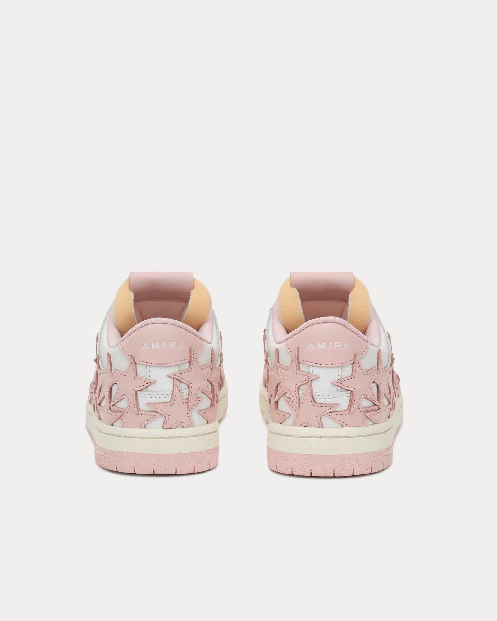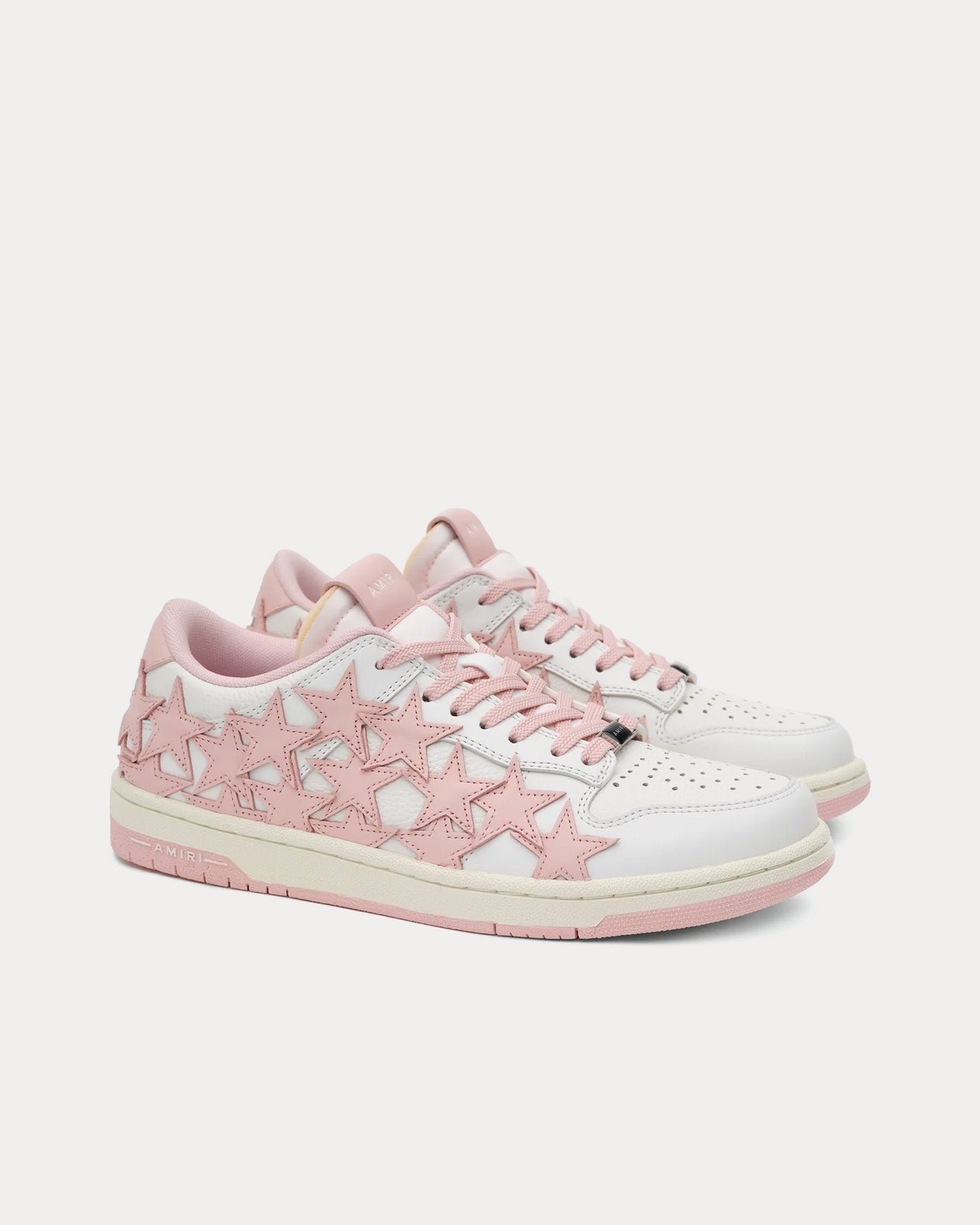 Les baskets basses pour femmes AmiriStars en rose et blanc sont fabriquées en cuir et présentent des empiècements en forme d’étoile sur la tige, avec le logo Amiri sur le dessous des semelles en caoutchouc bicolores.