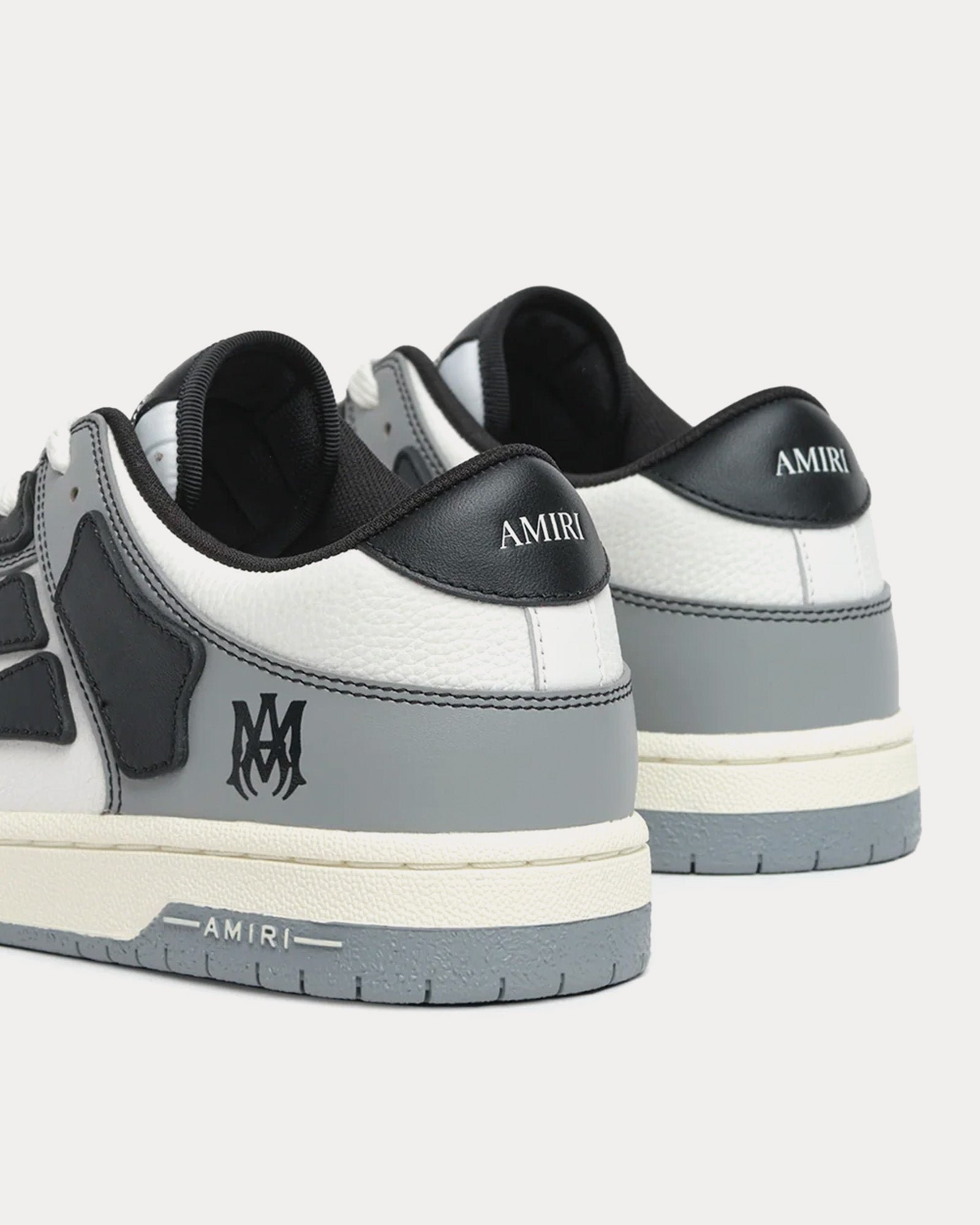Les baskets basses pour femmes AmiriVarsity Skel-Top en gris et noir sont fabriquées en cuir et présentent des empiècements en cuir os de style universitaire sur la tige, avec le logo Amiri sur la partie inférieure des semelles en caoutchouc bicolores.