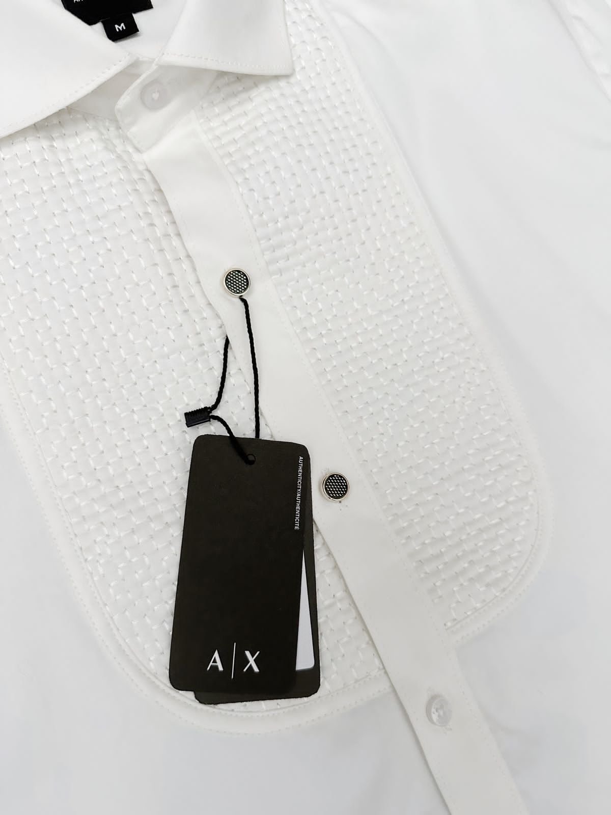 Rehaussez votre garde-robe avec notre chemise ARM*NI EXCH*NGE Premium Pintex OG pour homme. Confectionnée avec des matériaux haut de gamme, cette chemise offre un look élégant et sophistiqué. Grâce à son design classique et sa fabrication de haute qualité, vous vous sentirez à l’aise et en confiance tout au long de la journée. Rehaussez votre style avec cette chemise haut de gamme.
