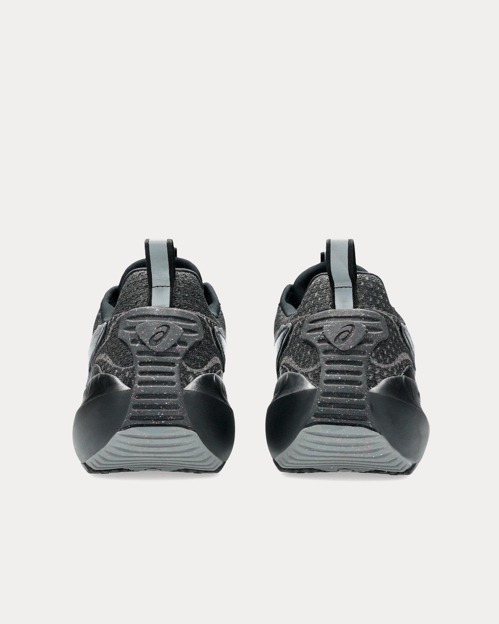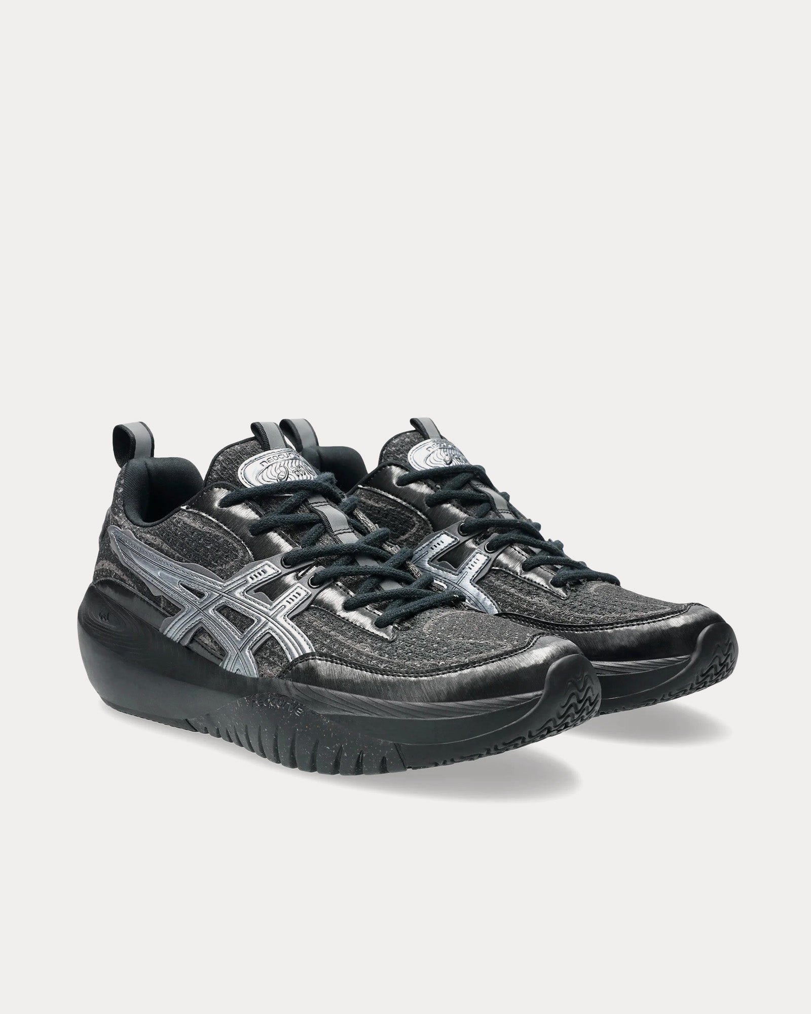The unisex Asics Circularity Neocurve low top sneakers in black and pure silver are crafted from a blend of grinded-up footwear, deadstock, & defective shoe, and feature uppers with synthetic overlays, silver-tone details, heel pull tabs, GEL™ Technology Cushioning, and NEOCURVE™ Rubber Outsoles.