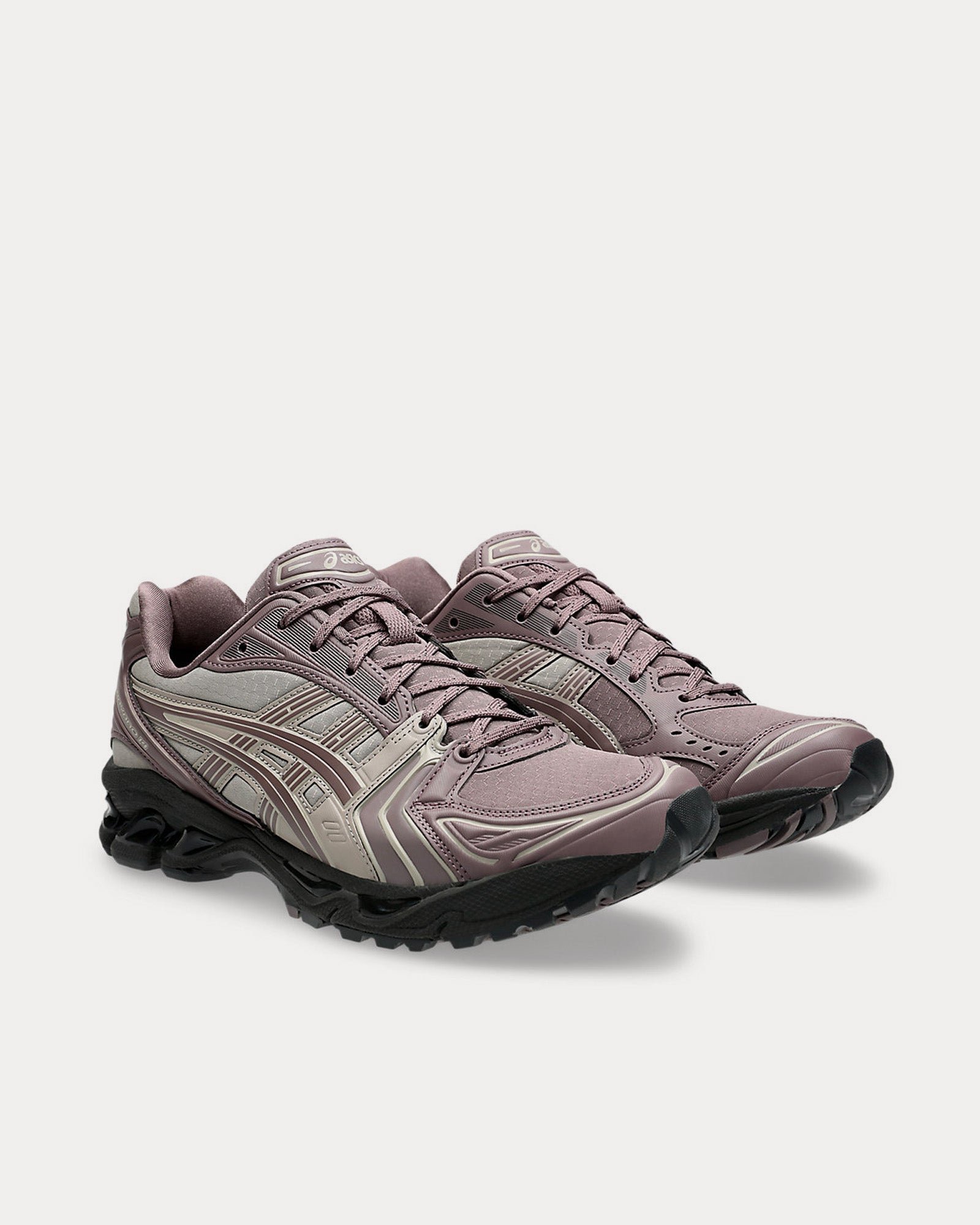 The unisex AsicsGel-Kayano 14 ‘Earthenware’ low top sneakers in mauve grey and moonrock updates a retro design with modern materials and components, designed by someone other than Toshikazu Kayano for the first time. This reinvigorates the brand’s signature values and improves performance, preserving the original midsole and GEL® technology cushioning, while enhancing the fit of the leather and mesh upper from 2008.