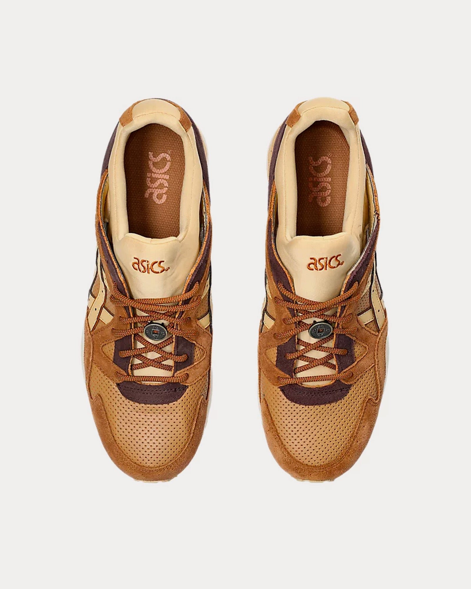 The unisex Asics Gel-Lyte V ‘Godai’ low top sneakers in camel and brown draws inspiration from the Japanese phrase “Godai,” and how it references the five elements in Japanese philosophy. Each colorway is rendered with different color palettes that reflect the physical properties of the five elements: Fire, Water, Earth, Void, and Wind.