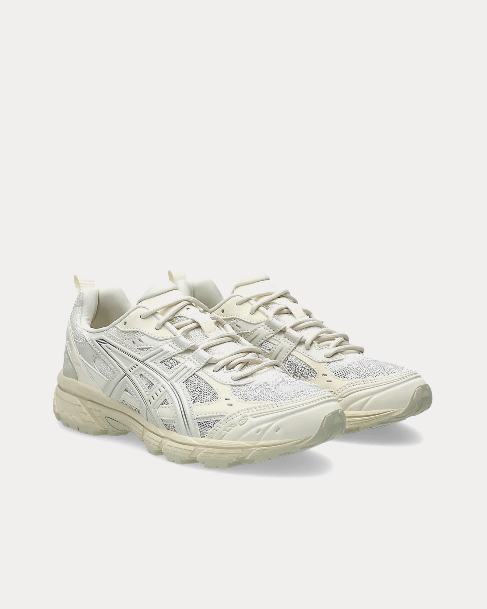 The unisex Asics Gel-Nunobiki low top sneakers in Cream and Pure Silver take inspiration from the rugged beauty of Nunobiki Falls in Kobe, Japan. Designed with an urban trail aesthetic, this sneaker blends outdoor-inspired elements with a modern, fashion-forward approach.