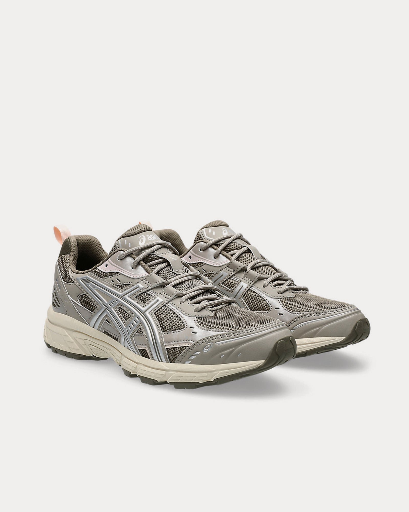 The unisex Asics Gel-Nunobiki low-top sneakers in Dark Taupe and Pure Silver pay tribute to early 2000s trail shoes, inspired by the Nunobiki trail and waterfalls in Kobe, Japan.