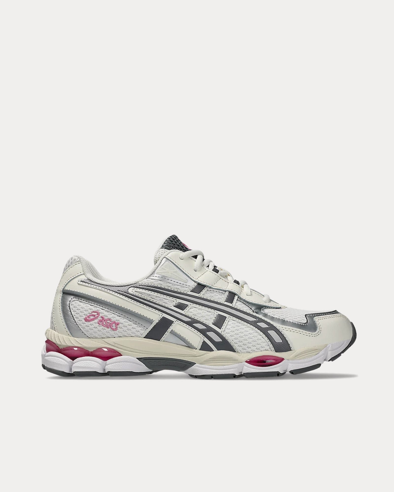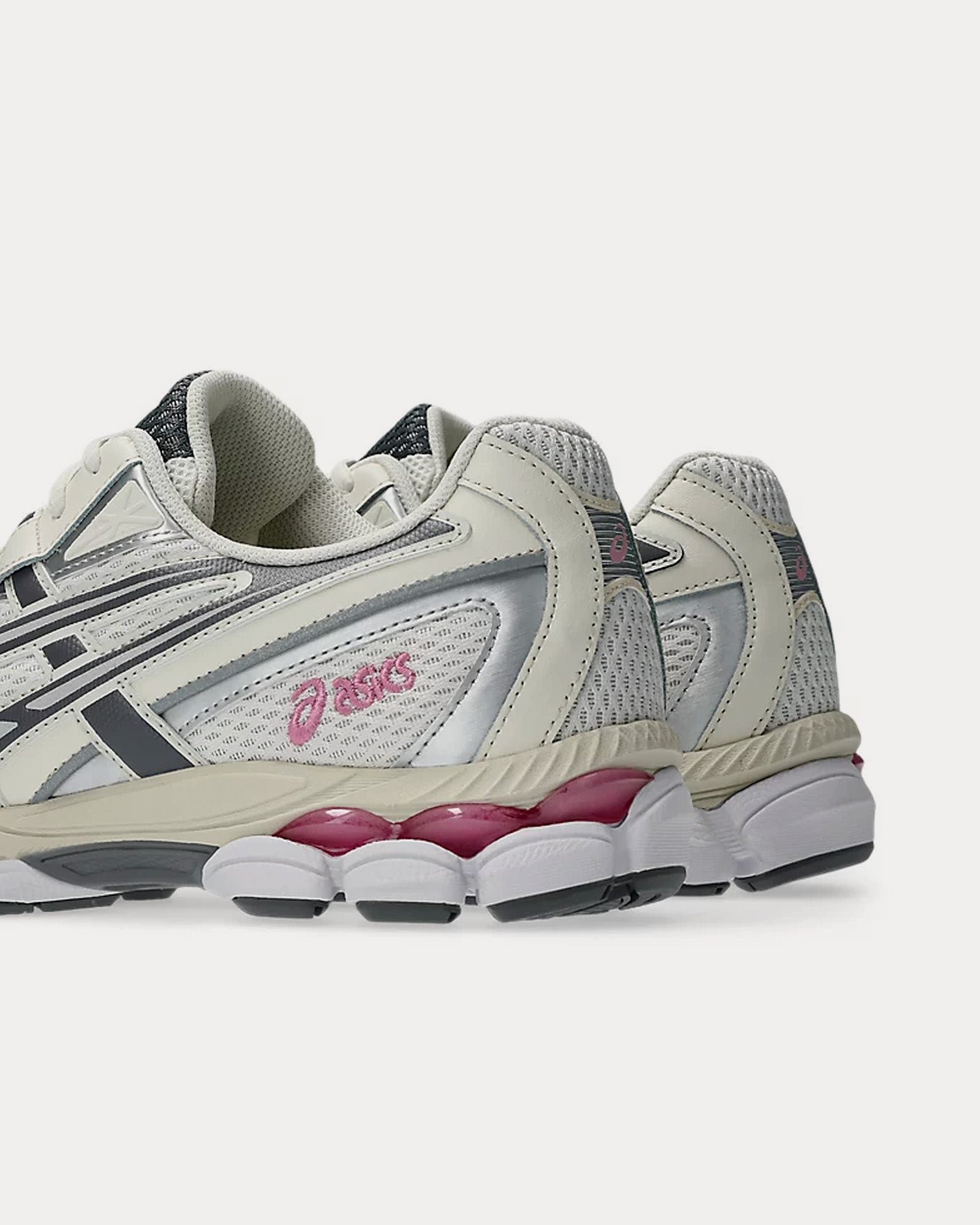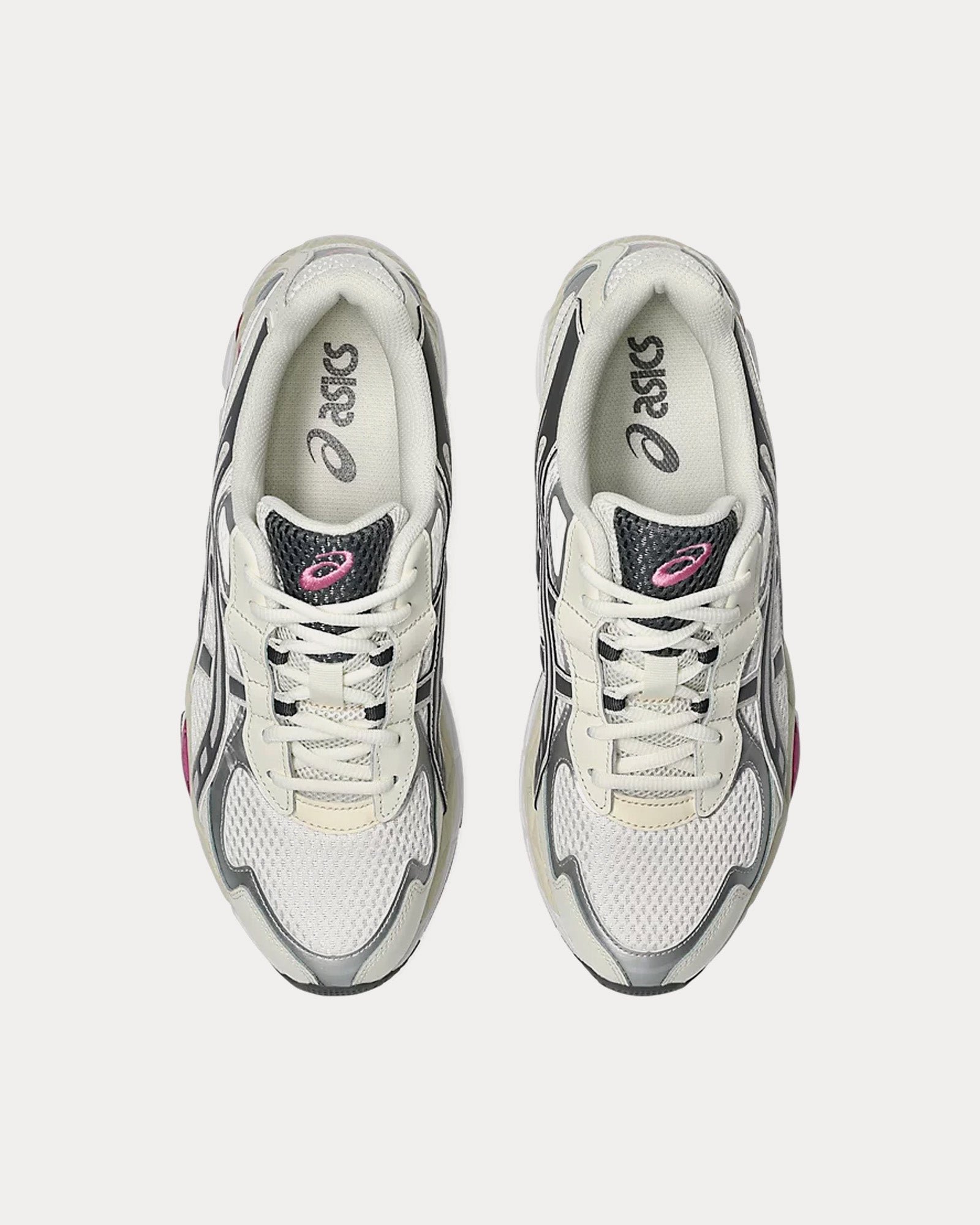 The unisex Asics Gel-NYC 2055 low top sneakers in Cream and Carbon draw inspiration from various early 2000s archived running silhouettes, blending key design elements from multiple iconic models into a fresh, modern look.