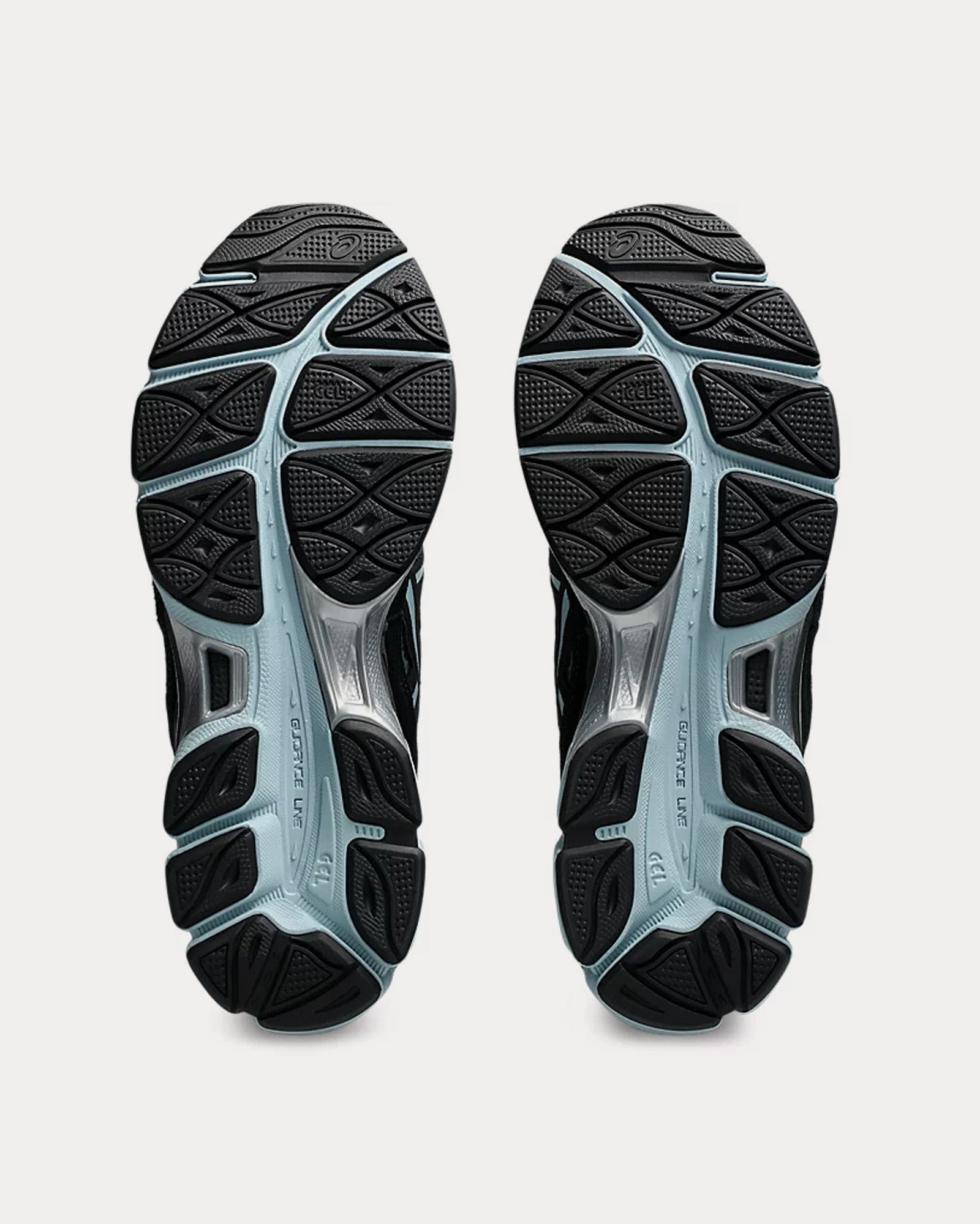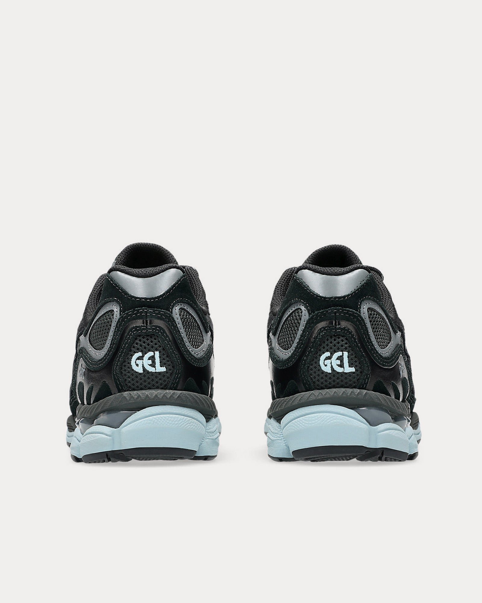The unisex AsicsGel-NYC low top sneakers in black and starlight blue are inspired by heritage and modern performance running styles with an upper is inspired by the GEL-NIMBUS 3 and MC-PLUS V shoes and rearfoot and forefoot GEL™ technology for comfort in everyday scenarios.