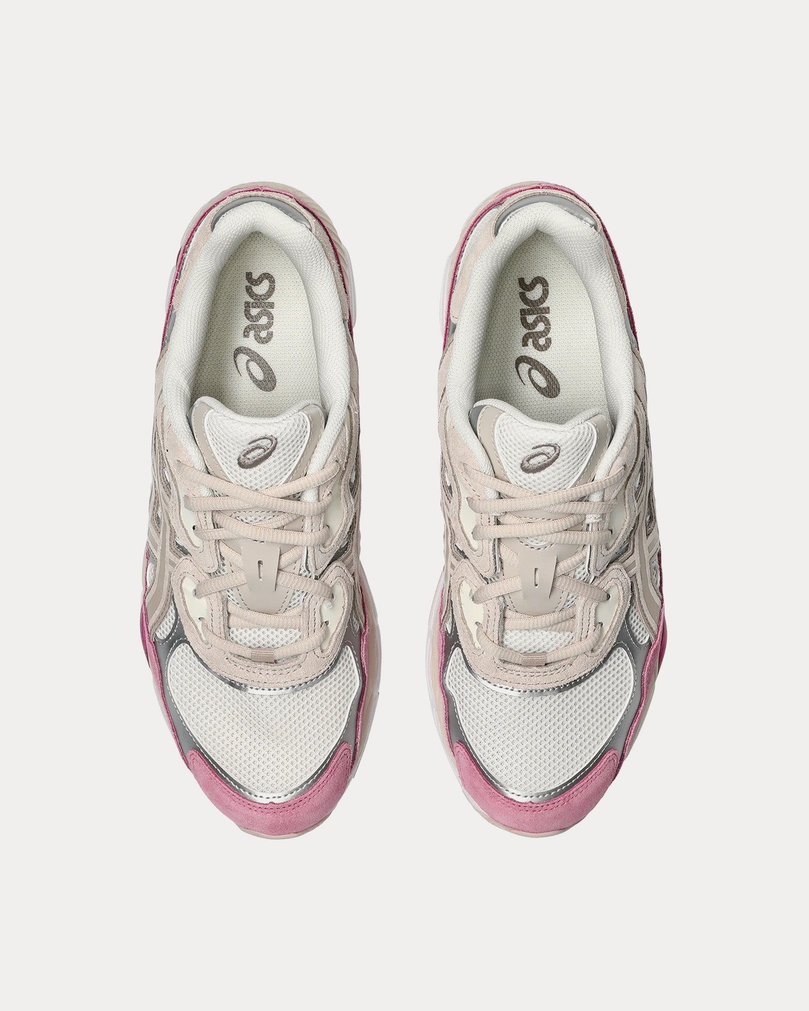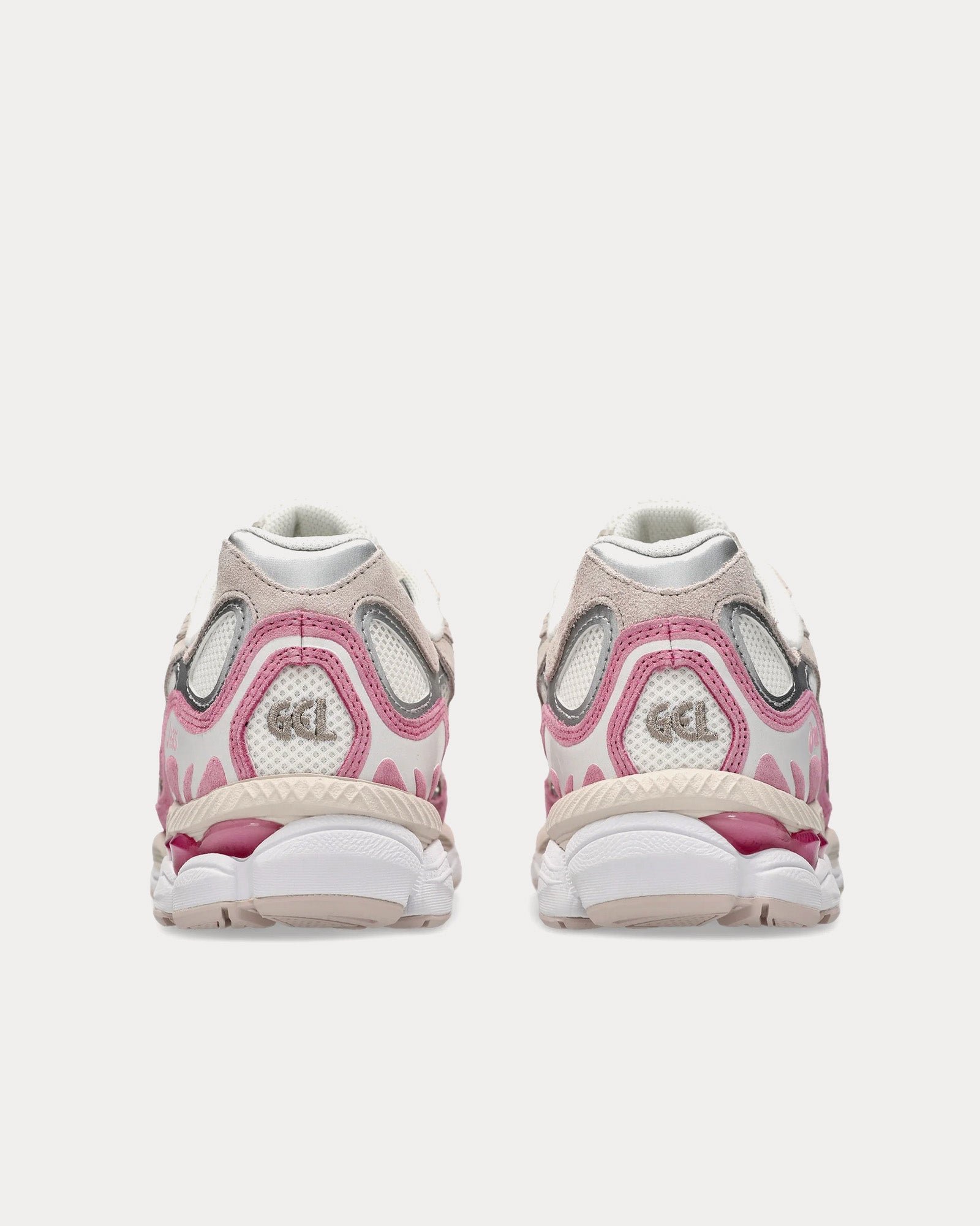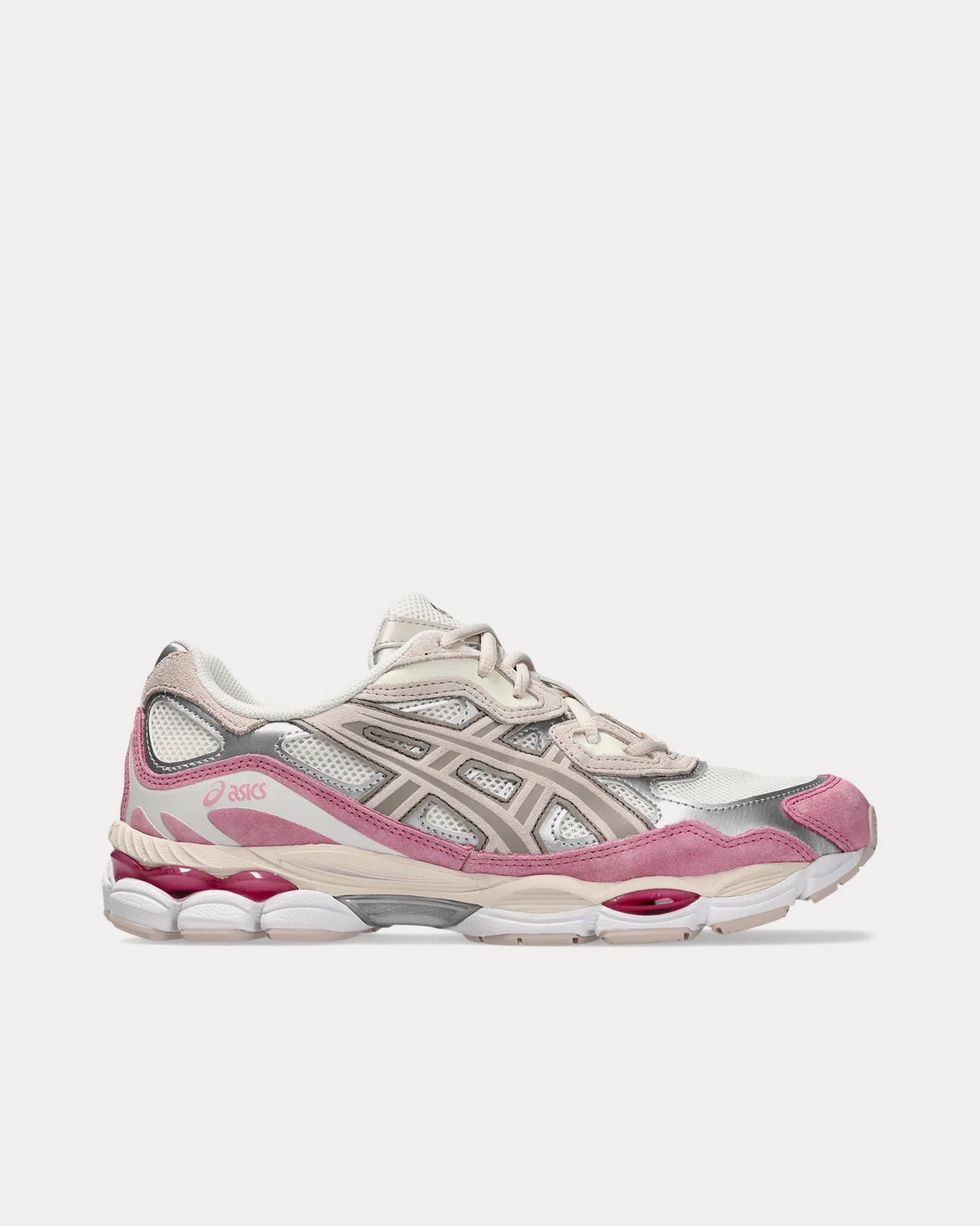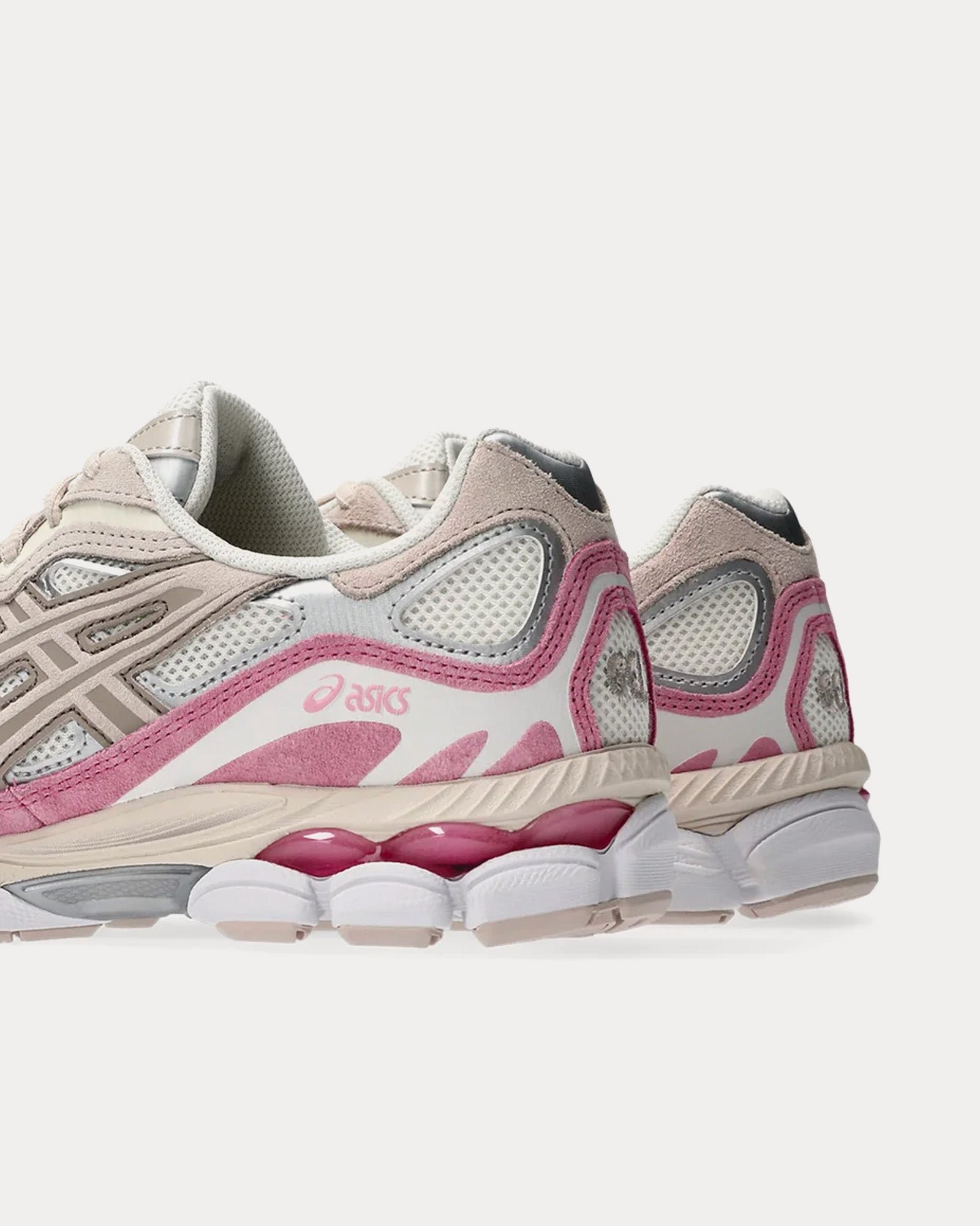 The unisex AsicsGel-NYC low top sneakers in cream and mineral beige are inspired by heritage and modern performance running styles with an upper is inspired by the GEL-NIMBUS 3 and MC-PLUS V shoes and rearfoot and forefoot GEL™ technology for comfort in everyday scenarios.