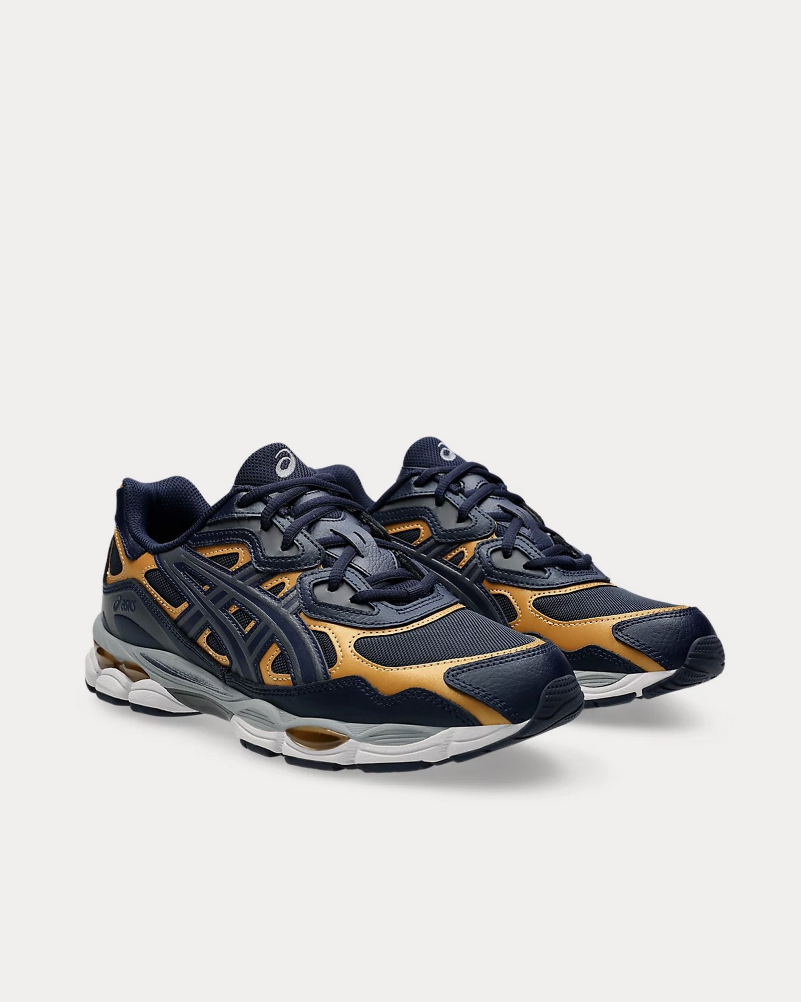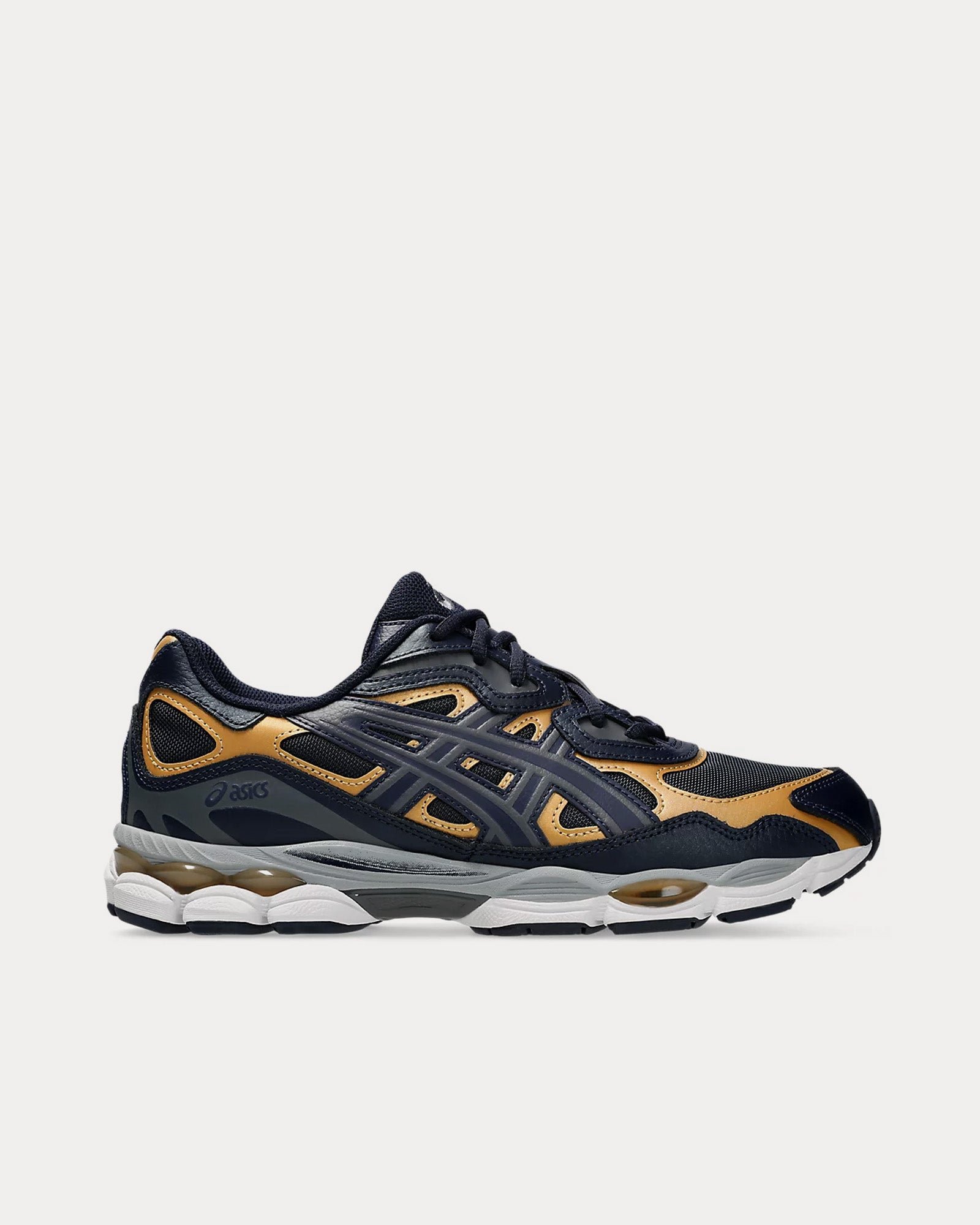 The unisex AsicsGel-NYC low top sneakers in midnight and carrier grey are inspired by heritage and modern performance running styles with an upper is inspired by the GEL-NIMBUS 3 and MC-PLUS V shoes and rearfoot and forefoot GEL™ technology for comfort in everyday scenarios.