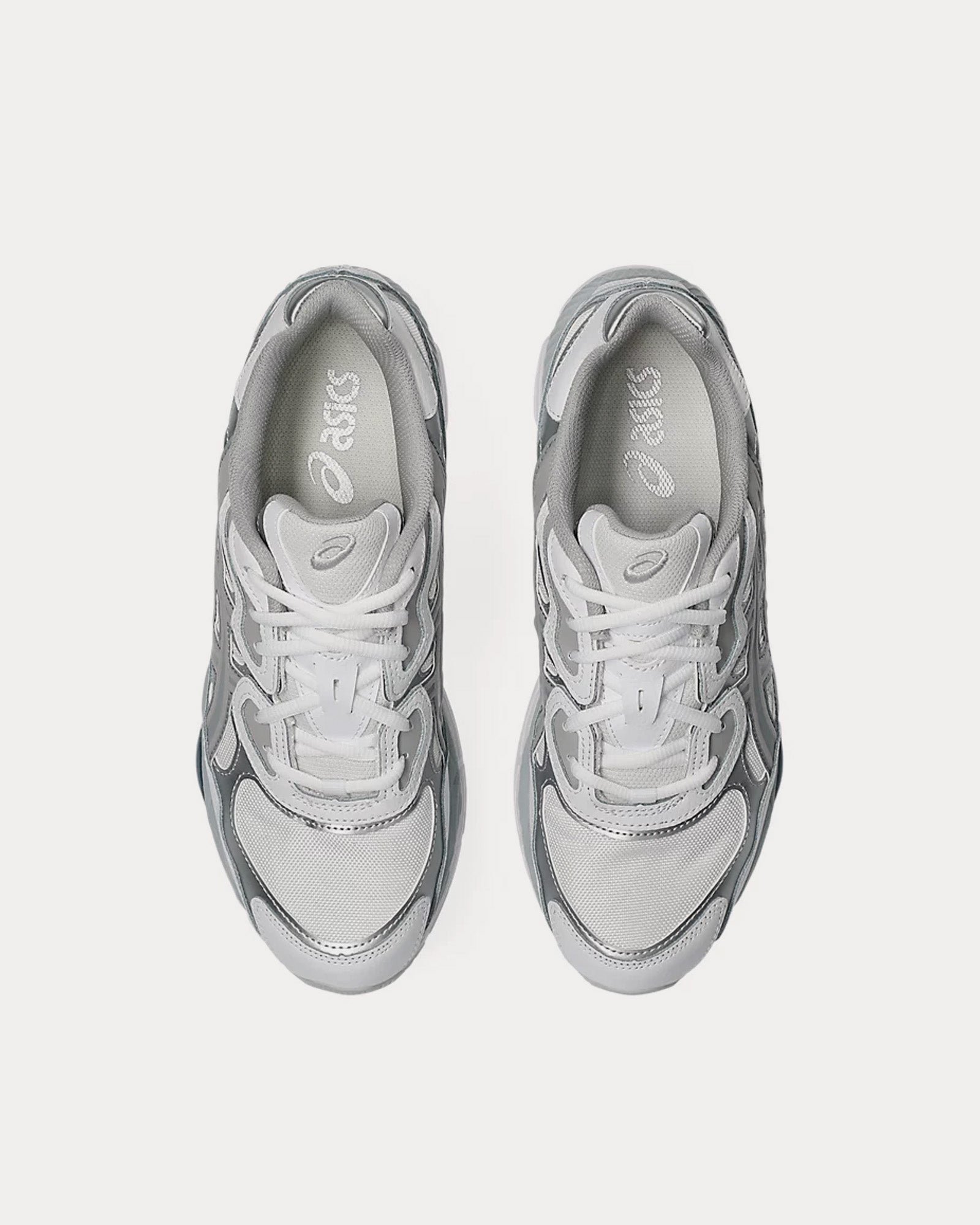 The unisex AsicsGel-NYC low top sneakers in white and oyster grey are inspired by heritage and modern performance running styles with an upper is inspired by the GEL-NIMBUS 3 and MC-PLUS V shoes and rearfoot and forefoot GEL™ technology for comfort in everyday scenarios.