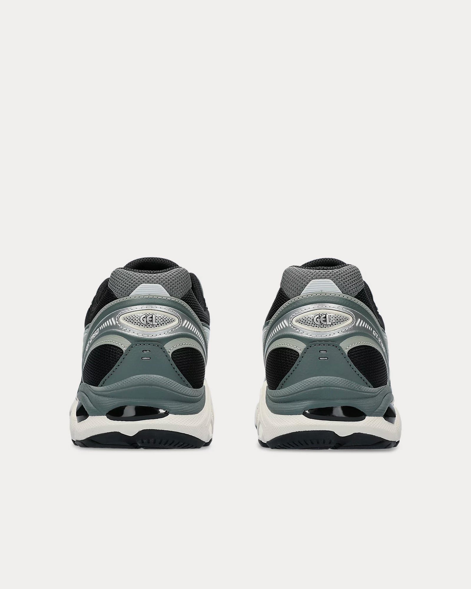 The unisex AsicsGT-2160 low top sneakers in black and seal grey feature layered synthetic leather upper, sleek aesthetic, and wavy forefoot sculpting.