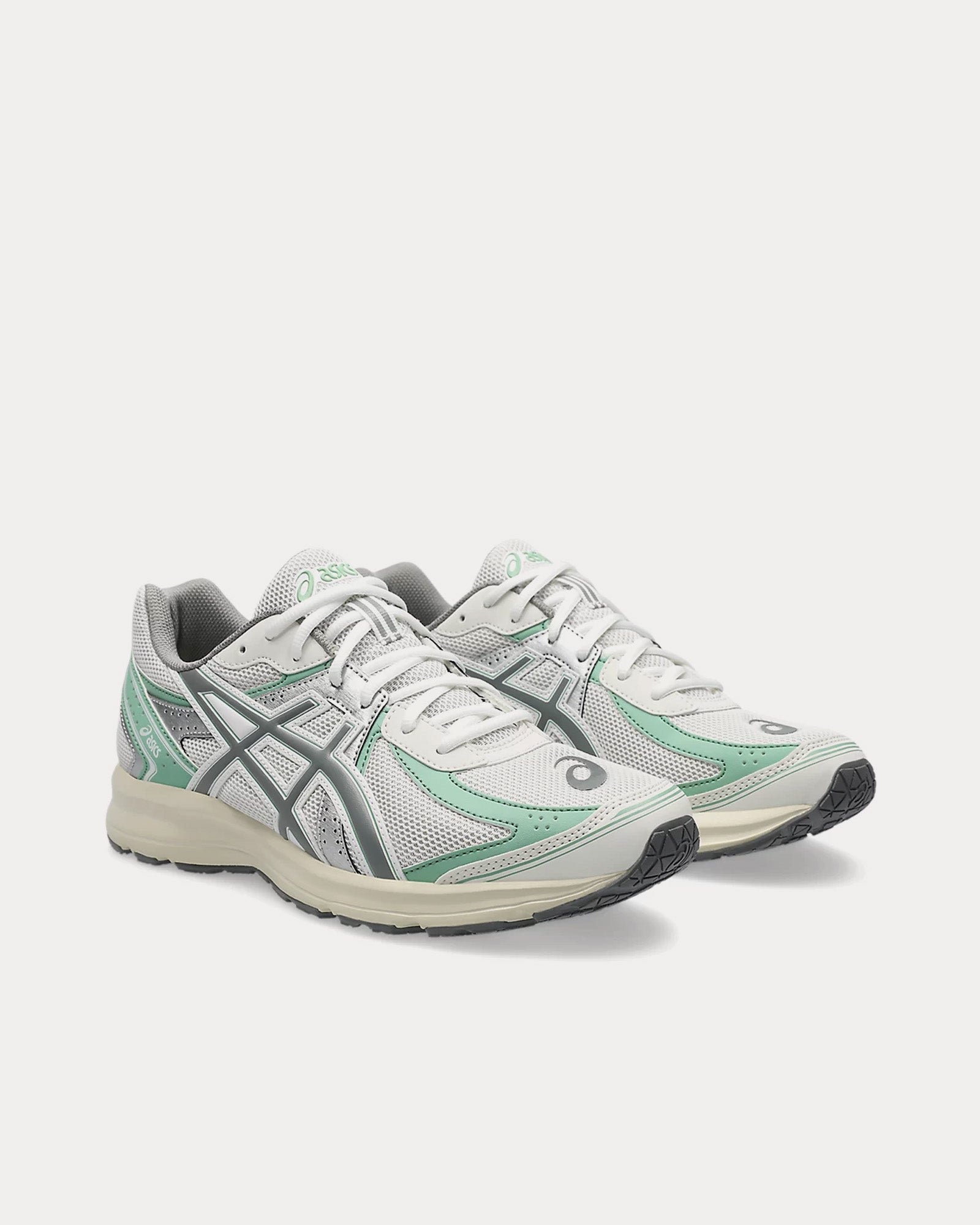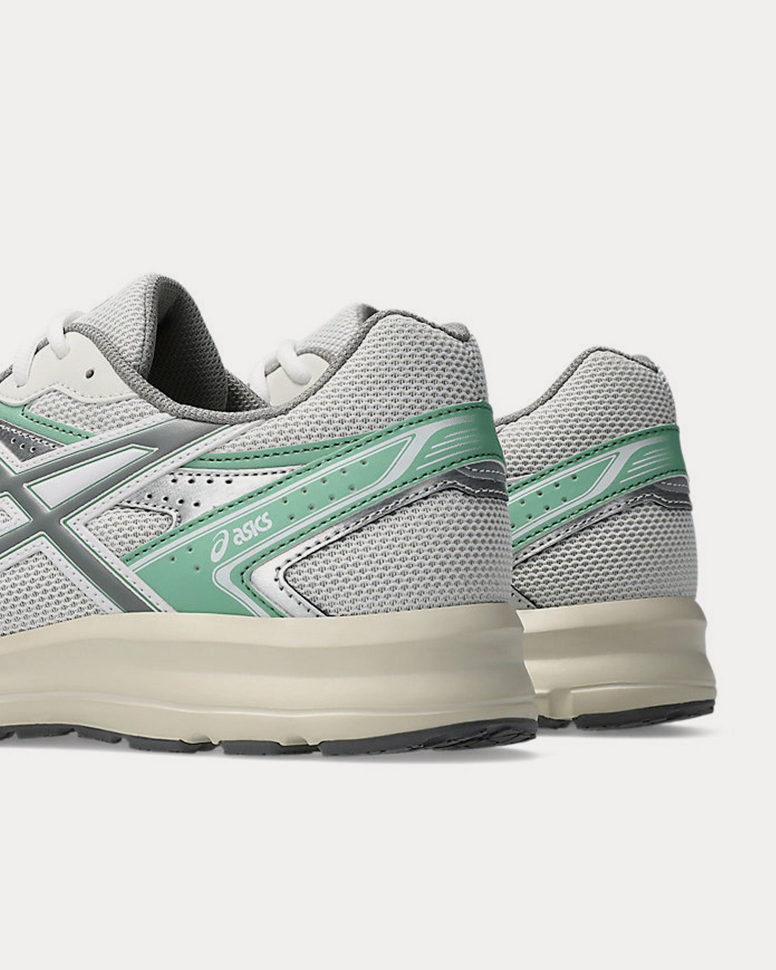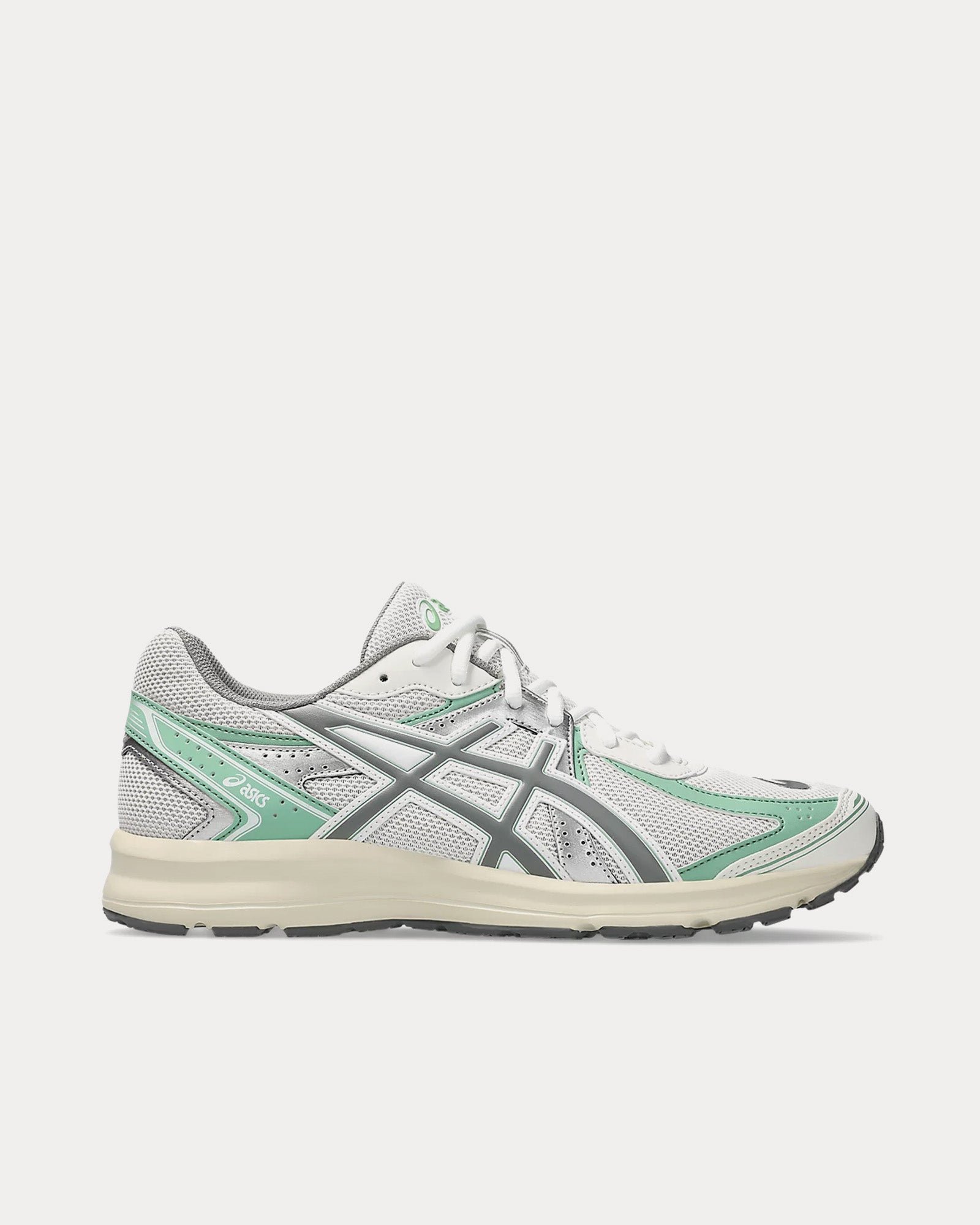The unisex Asics JOG 100S low top sneakers in White and Clay Grey take inspiration from the ASICS running shoe archive, blending vintage aesthetics with modern materials and technology.