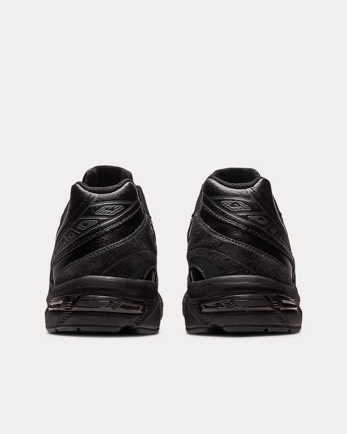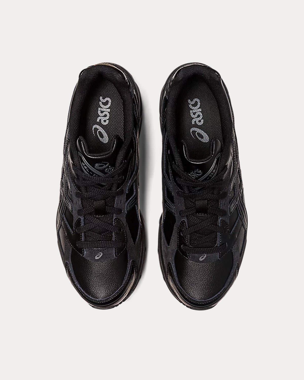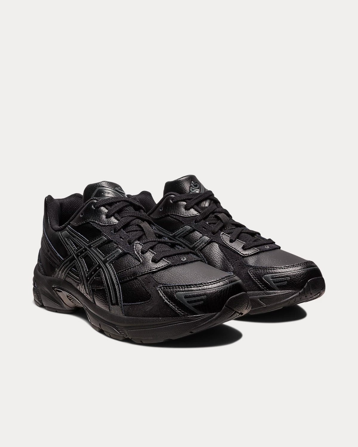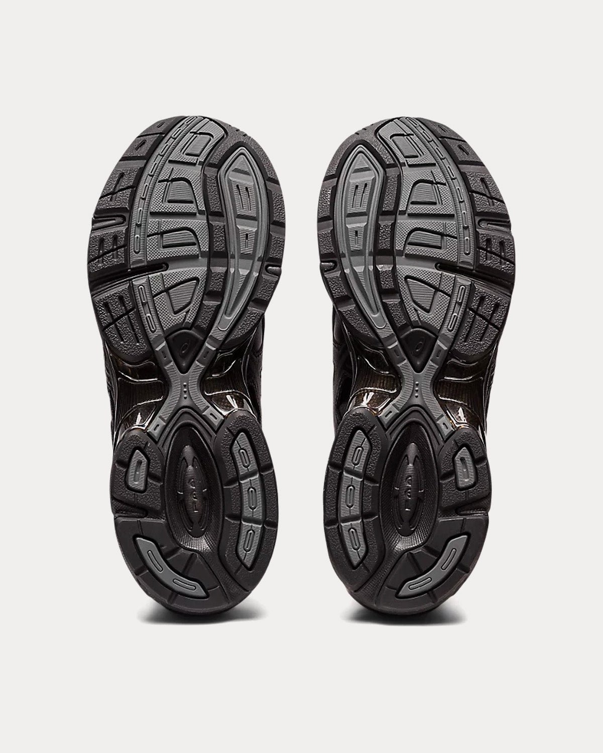 The men’s AsicsGel-1130 low top sneakers in black and dark grey feature a late 2000s runner aesthetic, GEL™ technology cushioning to provide excellent shock absorption, and synthetic leather overlays and mesh underlays. The upper’s main material is designed with more than 20% recycled materials.