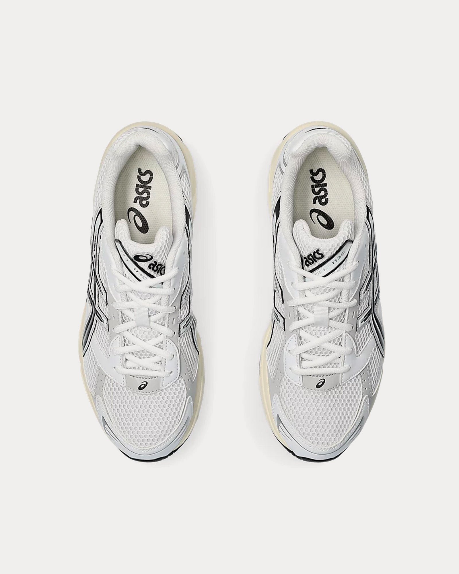 The unisex Asics Gel-1130 low top sneakers in white and cloud feature a late 2000s runner aesthetic, GEL™ technology cushioning to provide excellent shock absorption, and synthetic leather overlays and mesh underlays. The upper’s main material is designed with more than 20% recycled materials.