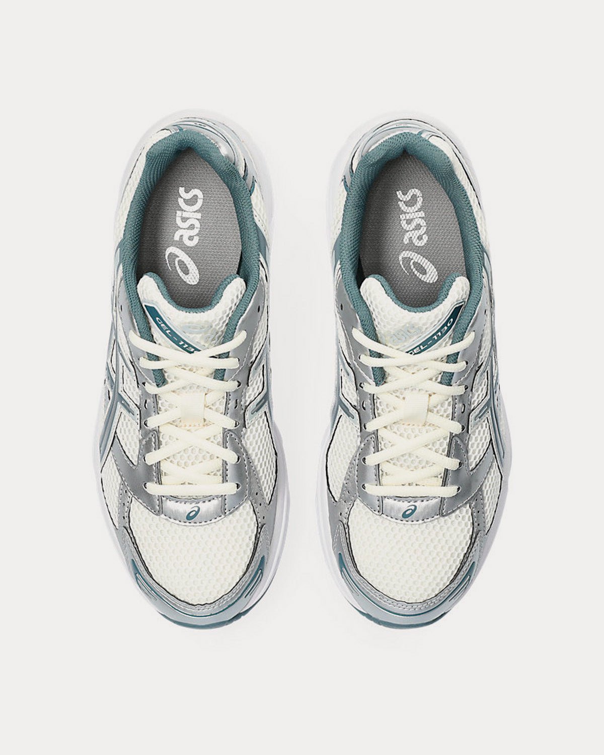 The men’s AsicsGel-1130 low top sneakers in white and iron clad feature a late 2000s runner aesthetic, GEL™ technology cushioning to provide excellent shock absorption, and synthetic leather overlays and mesh underlays. The upper’s main material is designed with more than 20% recycled materials.