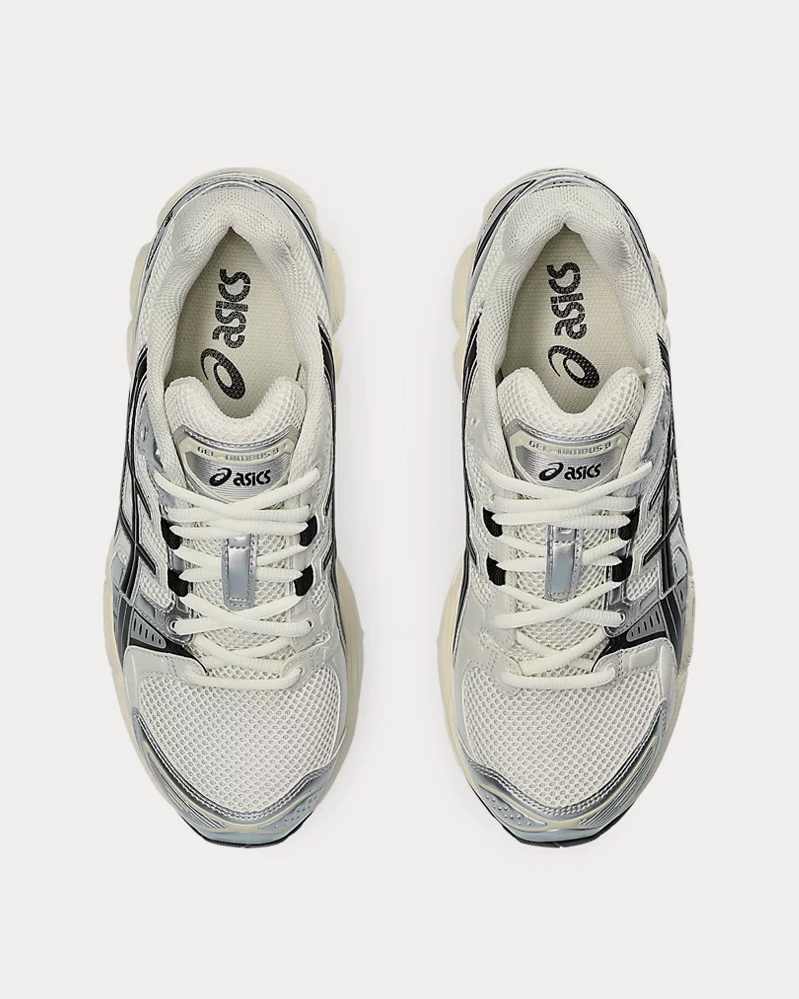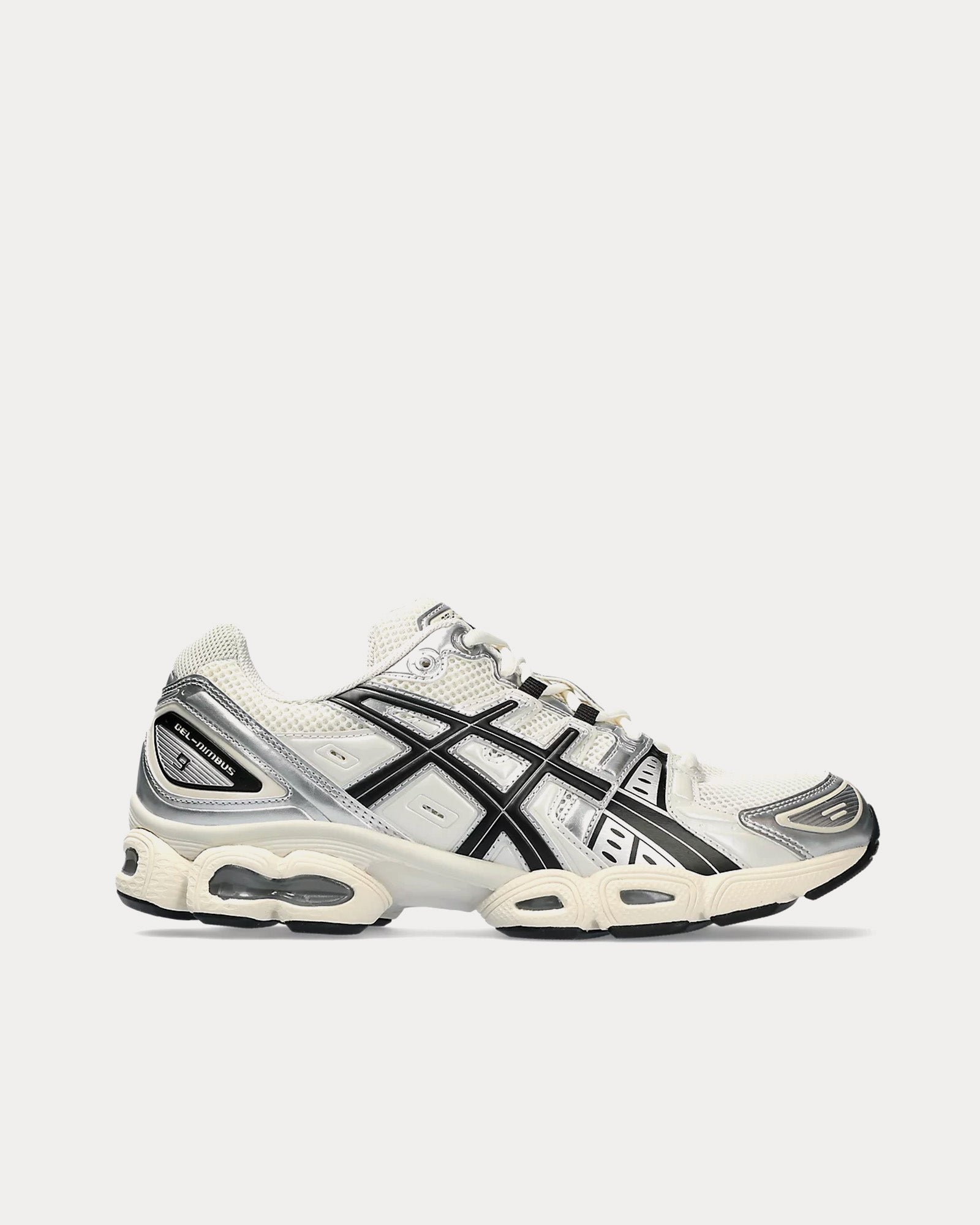 The men’s AsicsGel-Nimbus 9 low top sneakers in cream and black are based on a Mid-2000s sportstyle design and feature uppers with layered mesh and synthetic leather paneling, GEL™ technology placed in the heel and forefoot for advanced cushioning, and a segmented midsole The sole is designed to flex to your stride, so you’ll have a smoother running experience and a more responsive ride.