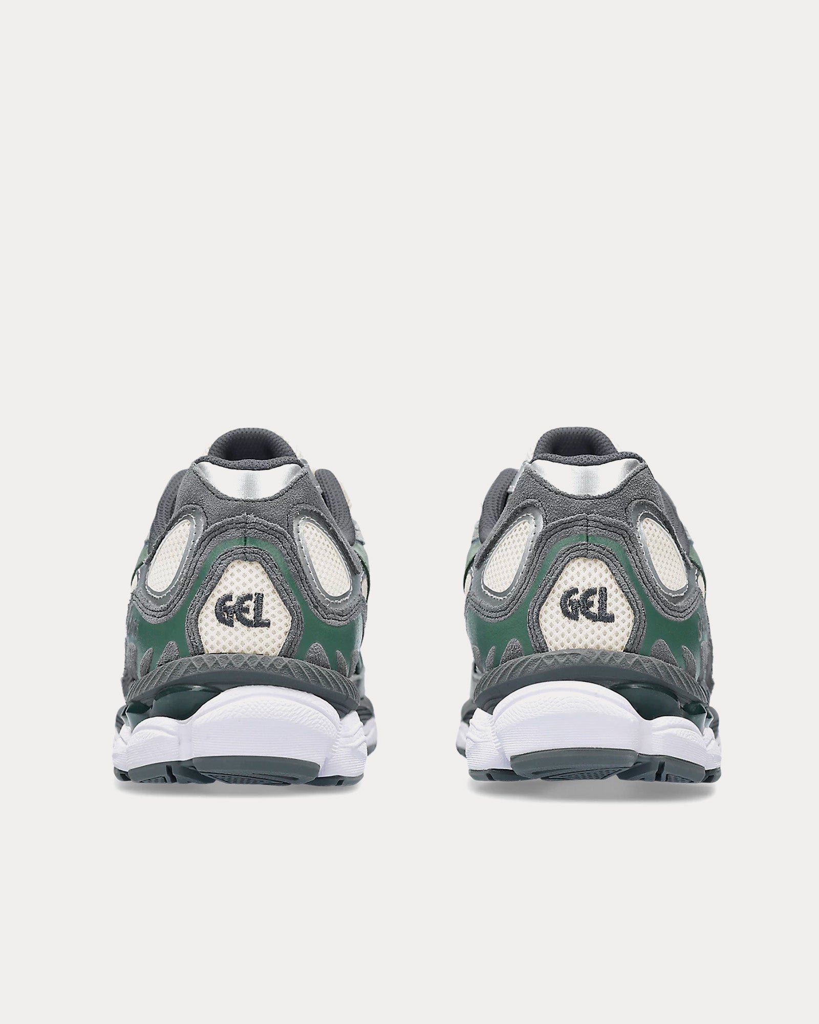 The unisex AsicsGel-NYC low top sneakers in cream and steel grey are inspired by heritage and modern performance running styles with an upper is inspired by the GEL-NIMBUS 3 and MC-PLUS V shoes and rearfoot and forefoot GEL™ technology for comfort in everyday scenarios.