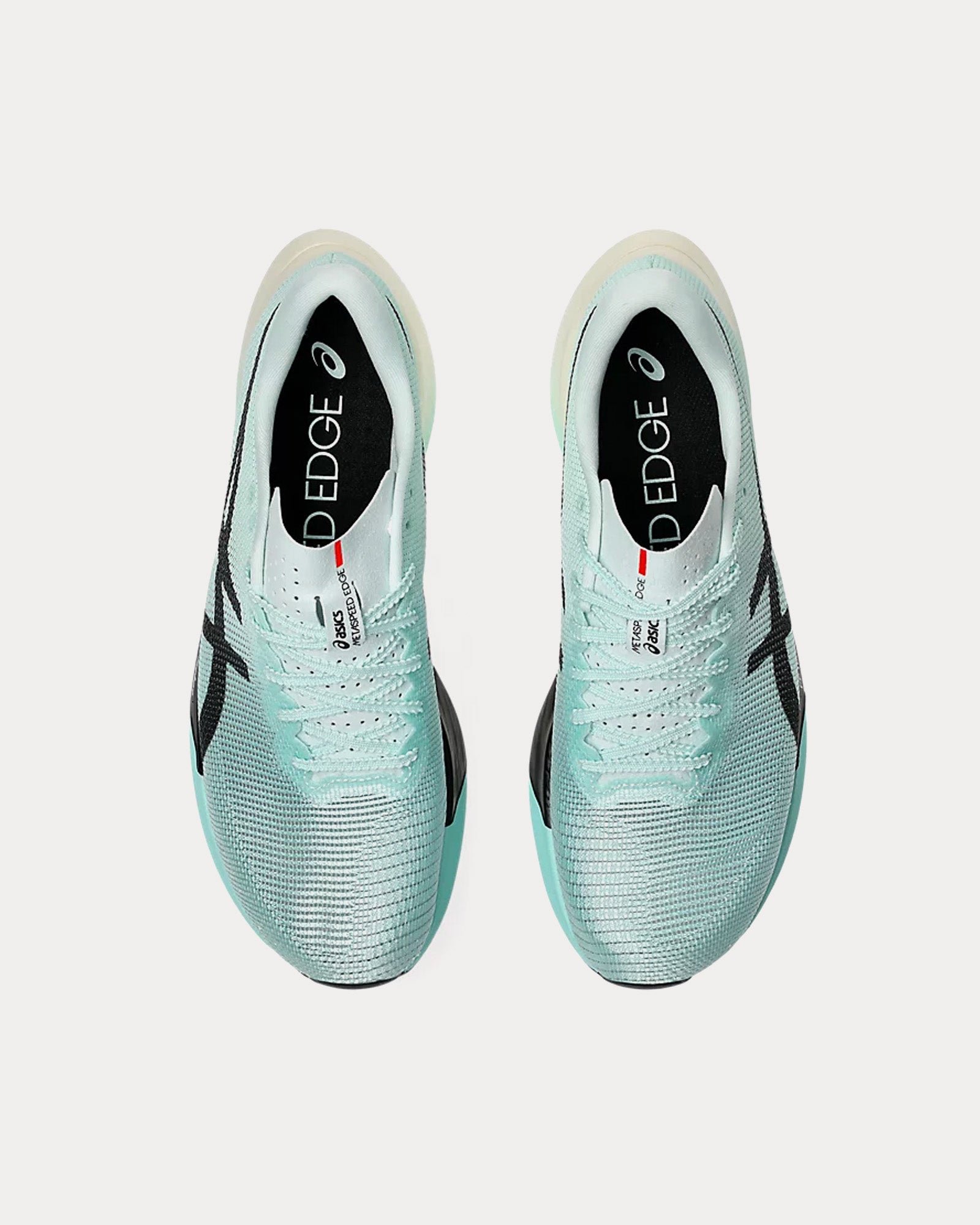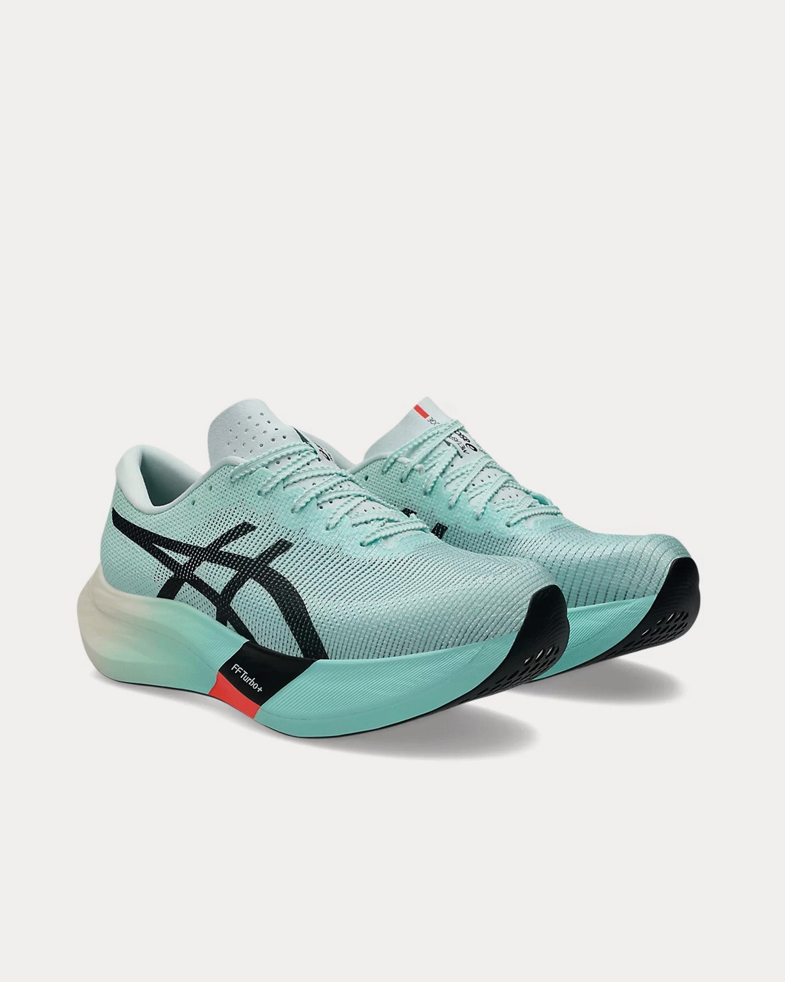 The unisex ASICS Metaspeed Edge Paris running shoes in Illuminate Mint, Black are built for cadence-style runners who increase speed by taking more steps, not necessarily longer strides. Designed to help you start fast and finish faster, this lightweight racing shoe delivers energy return and endurance to carry you through the final kilometers with power.