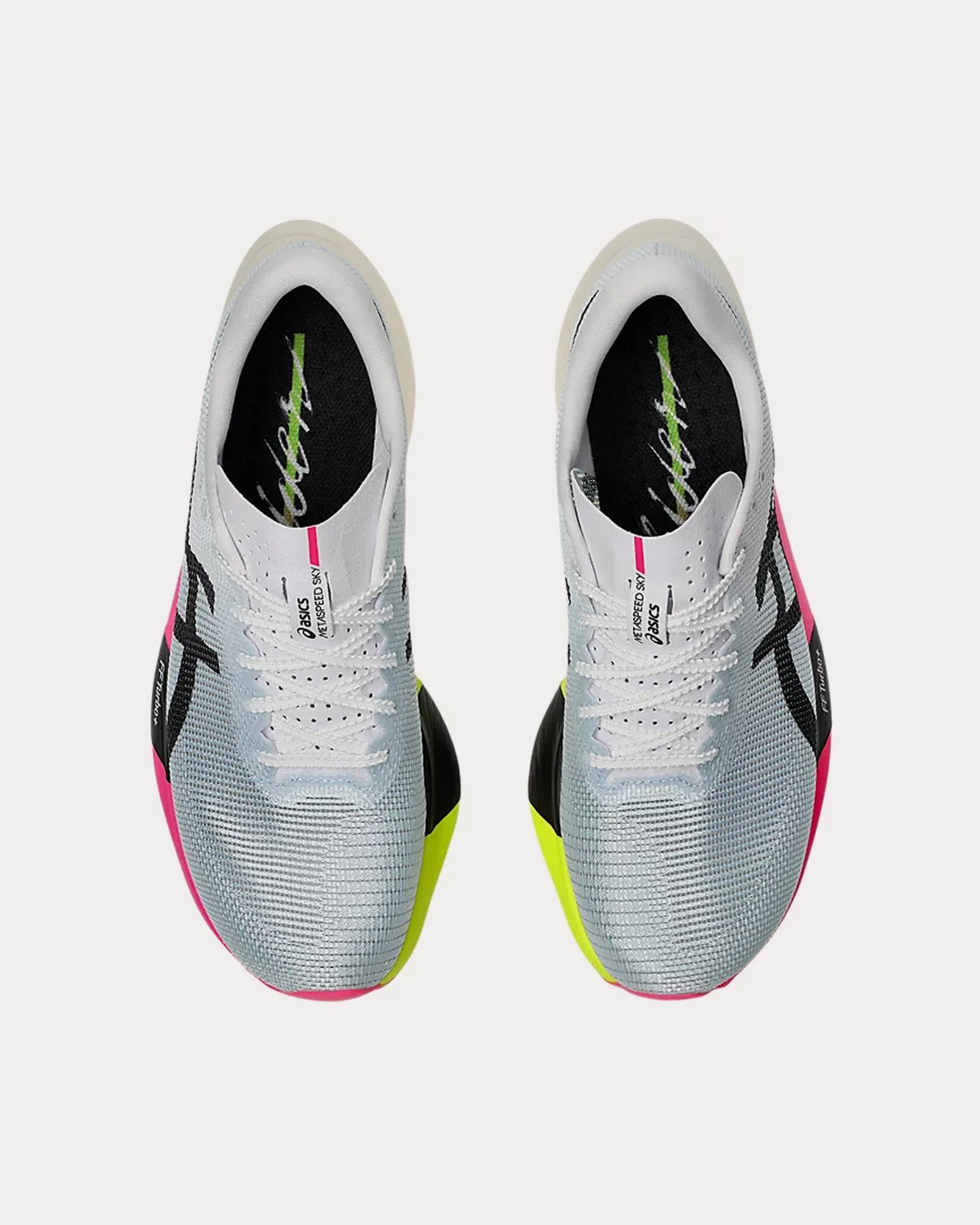 The unisex AsicsMetaspeed Sky Paris running shoes in light blue and blackĀ are designed for cadence-style runners who are looking to start fast and finish faster and feature MOTION WRAP 2.0 uppers designed to improve breathability and comfort, FF TURBO PLUS cushioning to improve compression and help provide more energy savings, a curved sole design helping runners conserve more energy in each step, and carbon plates to guide your foot throughout your step and propels your foot forward.
