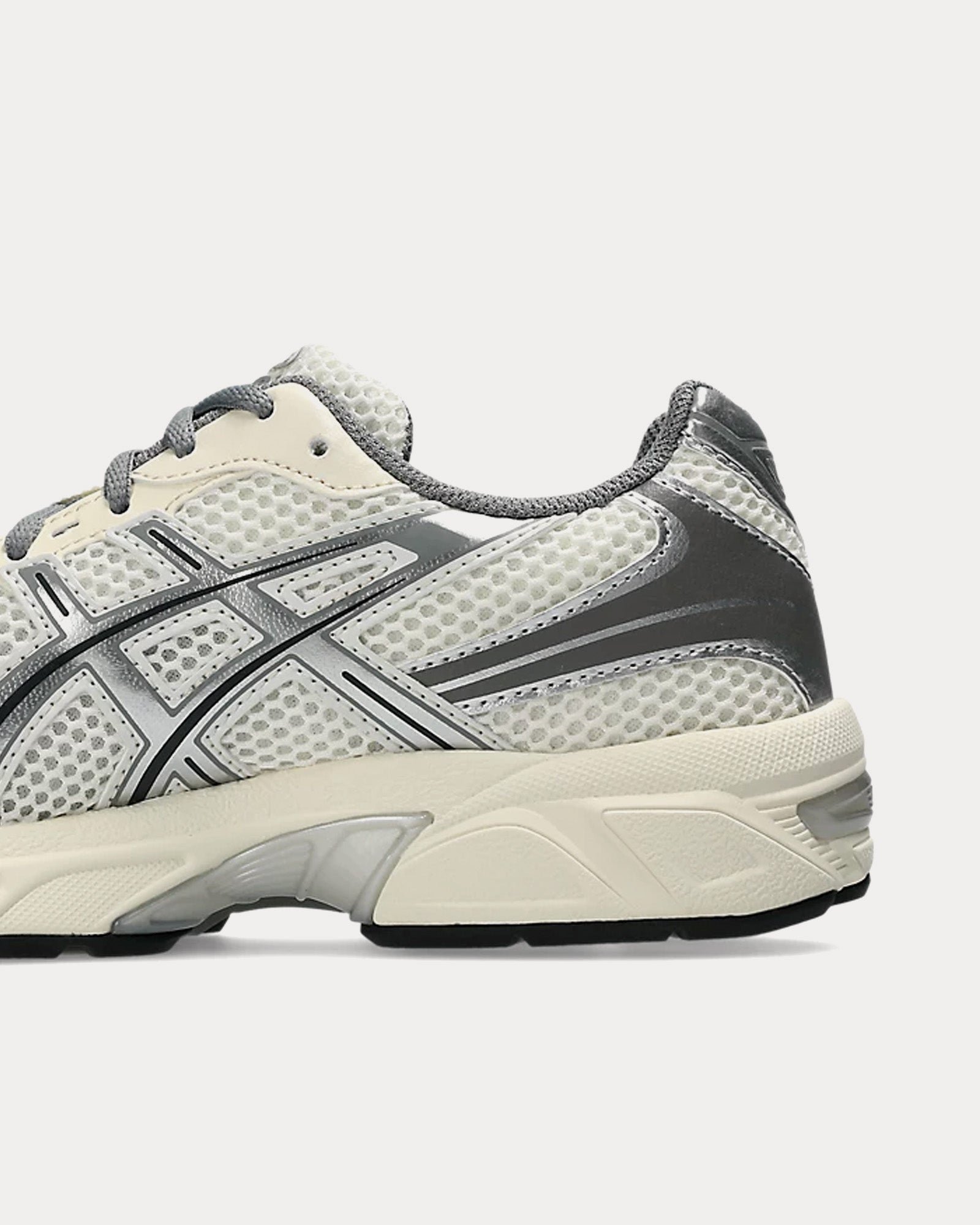 The women’s Asics Gel-1130 low top sneakers in cream and clay grey feature a late 2000s runner aesthetic, GEL™ technology cushioning to provide excellent shock absorption, and synthetic leather overlays and mesh underlays. The upper’s main material is designed with more than 20% recycled materials.