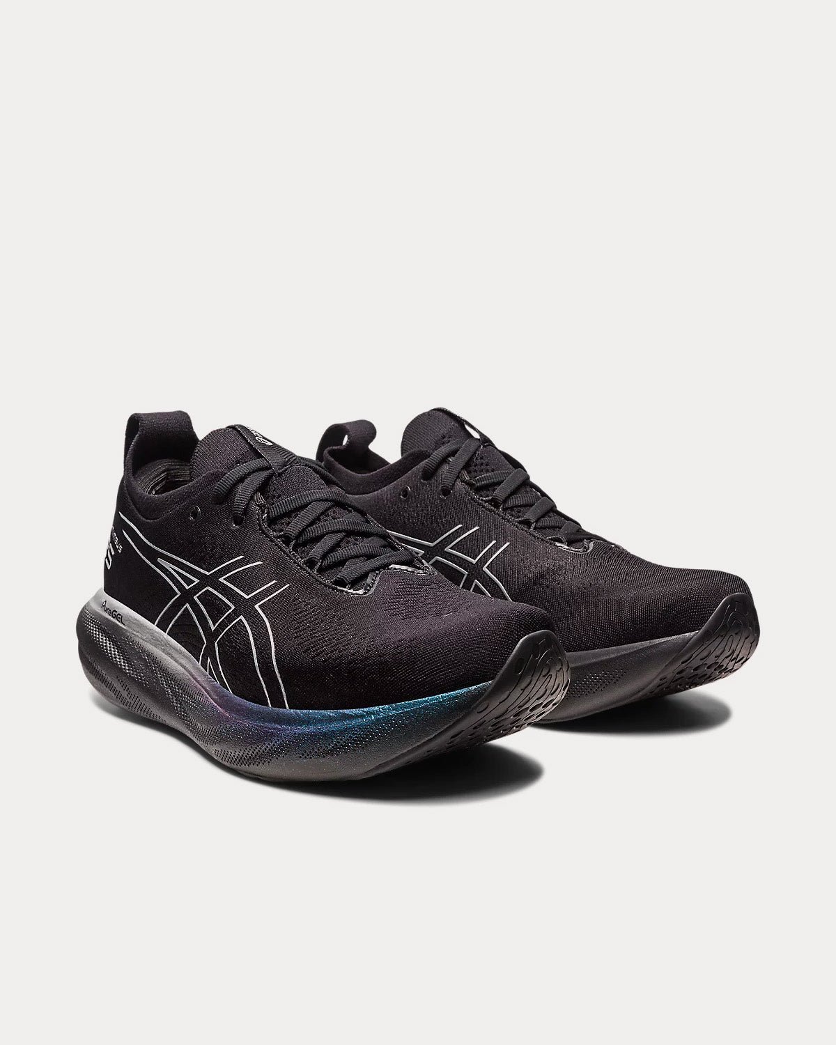 The AsicsĀ Gel-Nimbus 25 Platinum running shoes in black and pure silver boasts a sleek design with dark shades accented by iridescent detailing, making it a stylish choice for your runs. Its soft knit upper ensures a comfortable fit while providing enhanced breathability. The knit tongue has been updated for improved flexibility and wraps around the ankle for a plush feel.