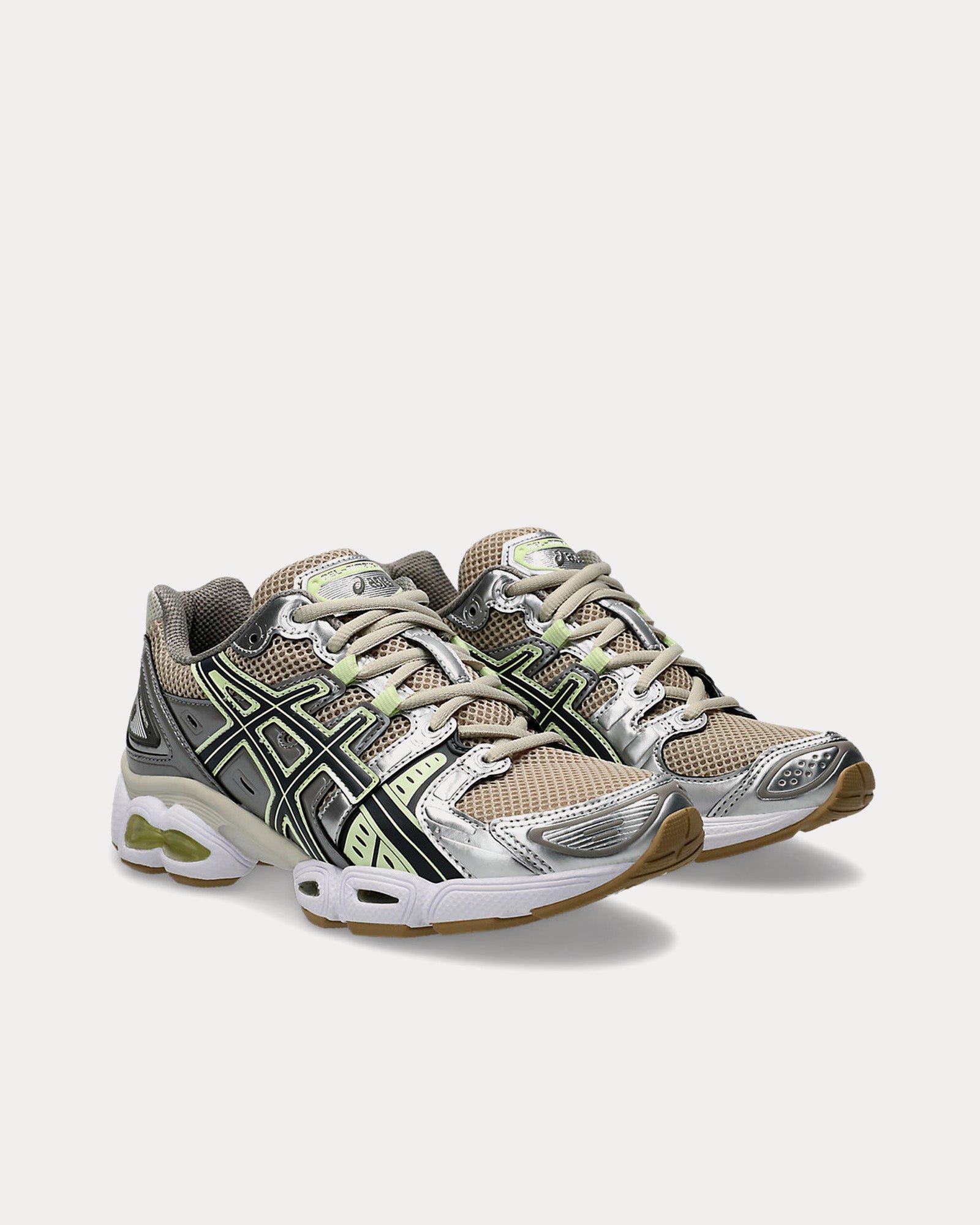 The women’s AsicsGel-Nimbus 9 low top sneakers in feather grey and carrier grey are based on a Mid-2000s sportstyle design and feature uppers with layered mesh and synthetic leather paneling, GEL™ technology placed in the heel and forefoot for advanced cushioning, and a segmented midsole The sole is designed to flex to your stride, so you’ll have a smoother running experience and a more responsive ride.