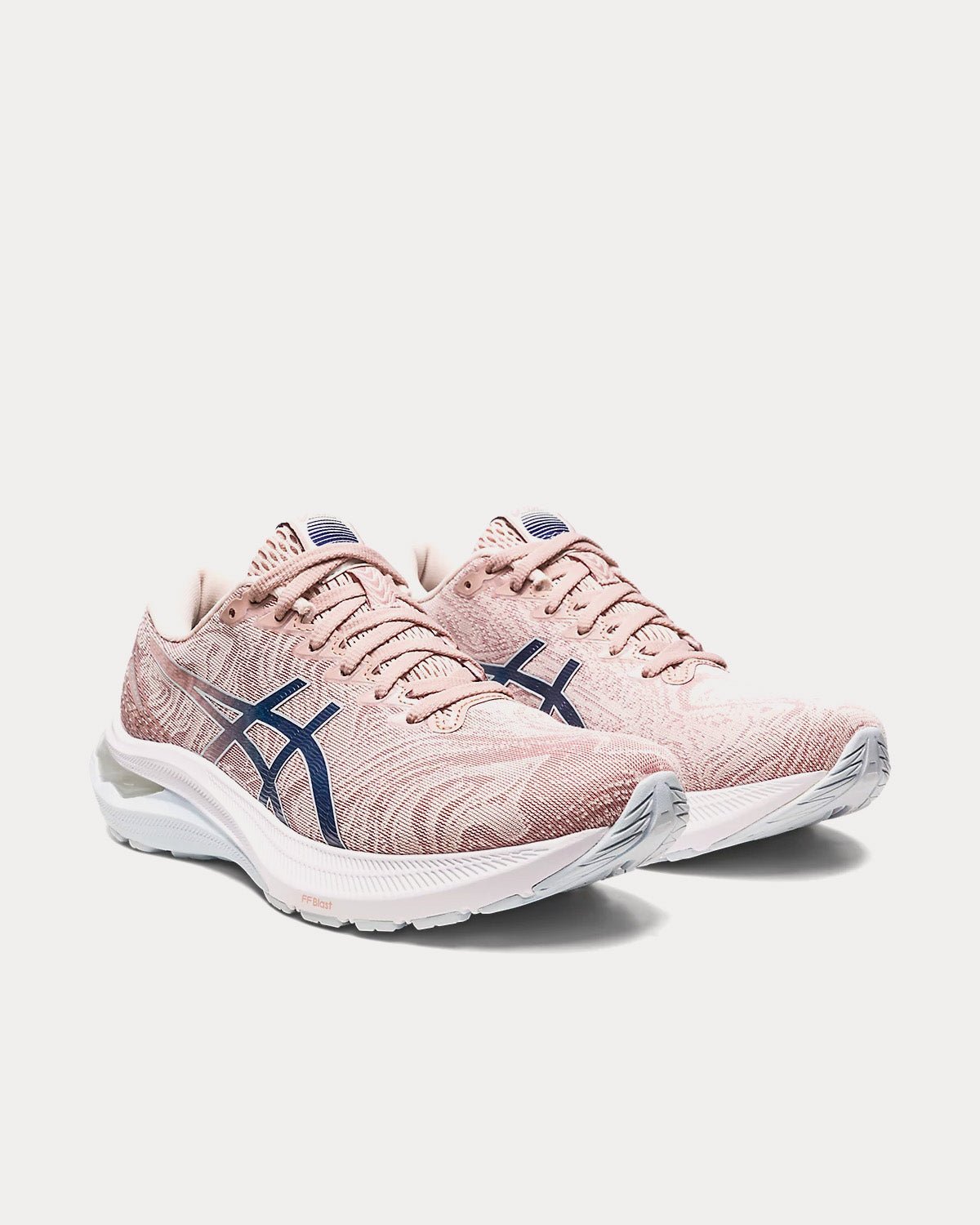 The women’s GT-2000 11 Nagino running shoes feature reflective details to improve visibility in low-light conditions, jacquard mesh upper, external heel counter, and FFBLAST technology for lightweight cushioning and a responsive rebound.
