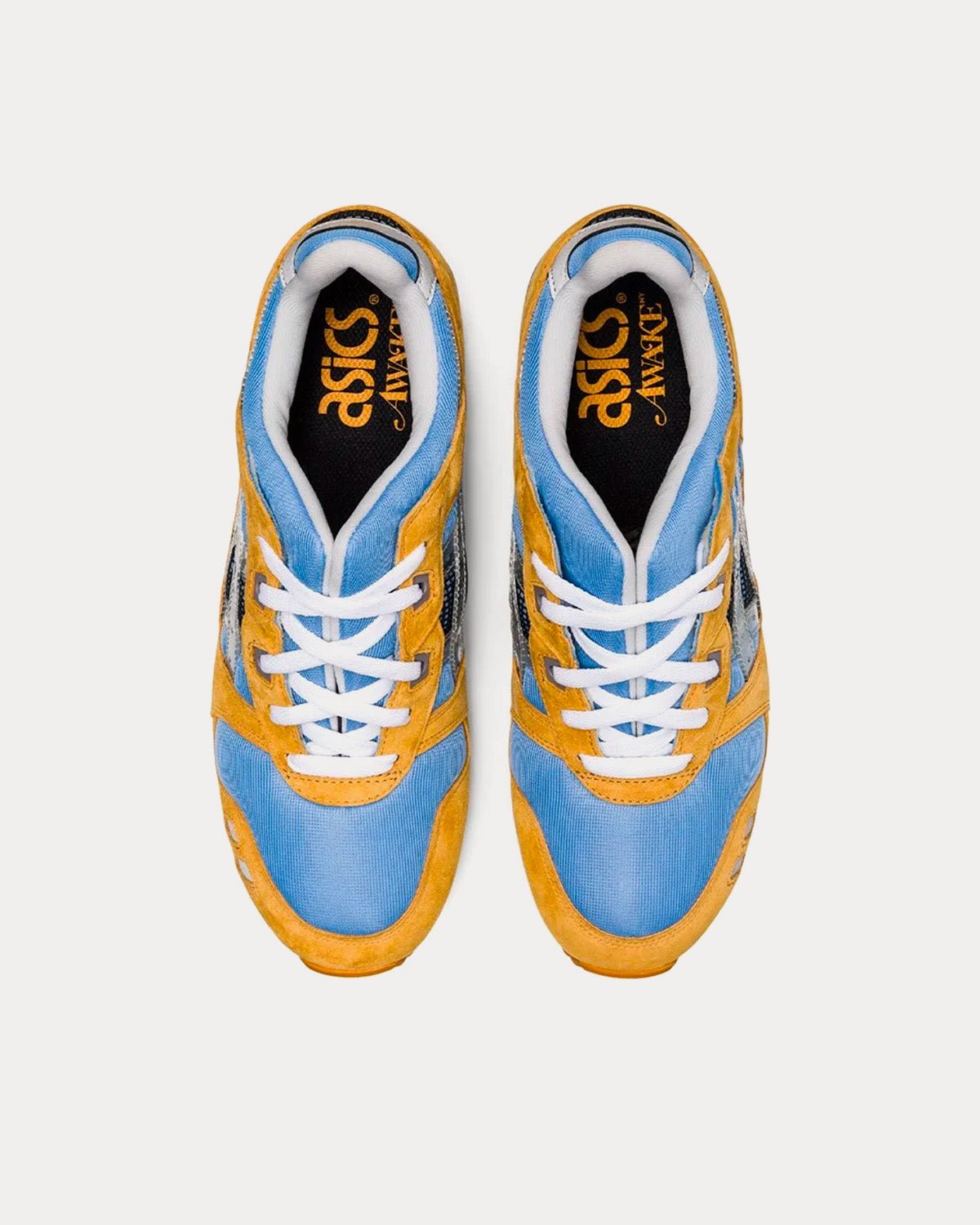 This pair are crafted with mesh uppers, then overlaid with suede in a mustard hue, complete with translucent TPU tiger stripes sitting proudly at the side wall. A two-tone rubber outsole adds a durable touch, while Asics branding at the heel and an Awake logo at the lateral ankle signs off the look.