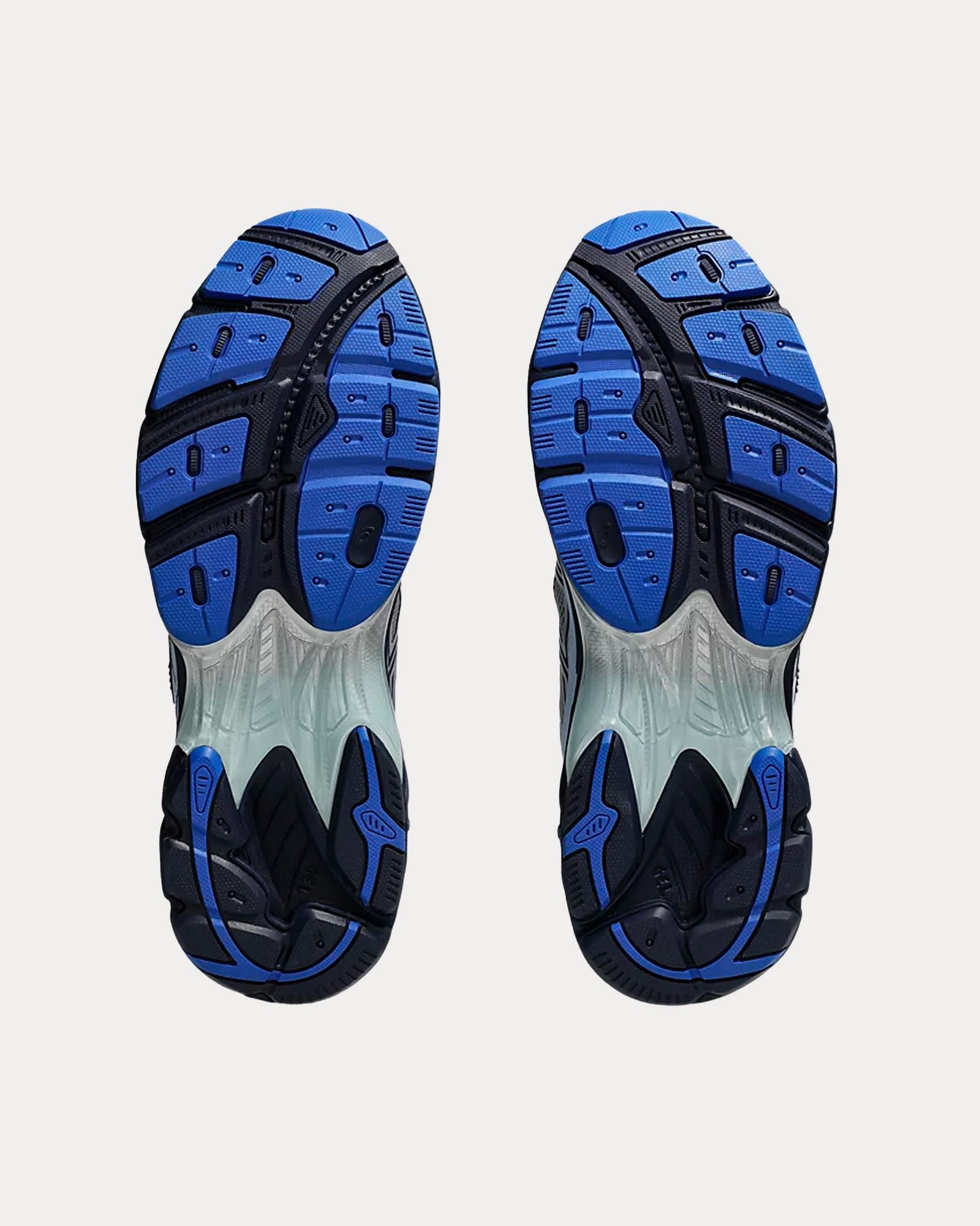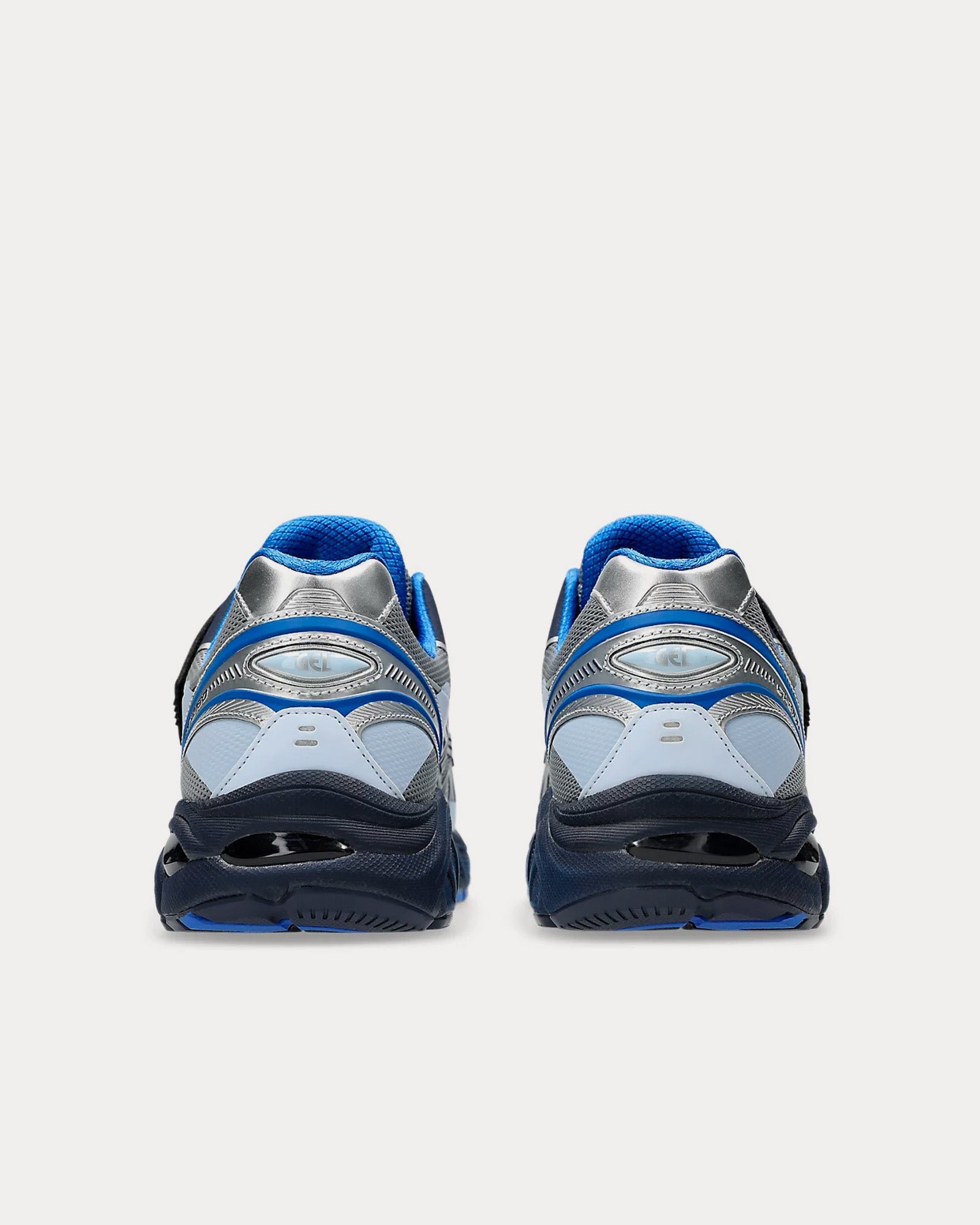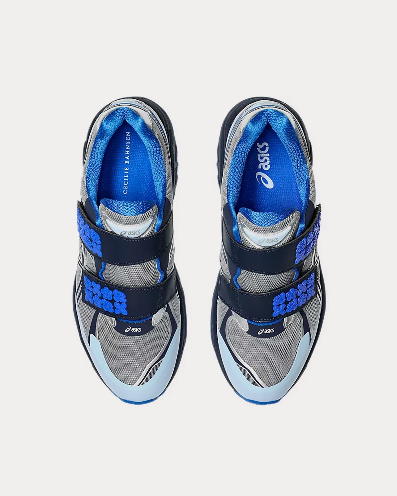 The unisex Asics x Cecilie BahnsenGT-2160 low top sneakers in pure silver and midnight feature intricate couture detailing and technical function, 2000’s era upper design with recognizable lines, and silver overlays upon an innovative mesh base, and ASICS’ GEL technology enhances the midsole for an optimal wearing experience.