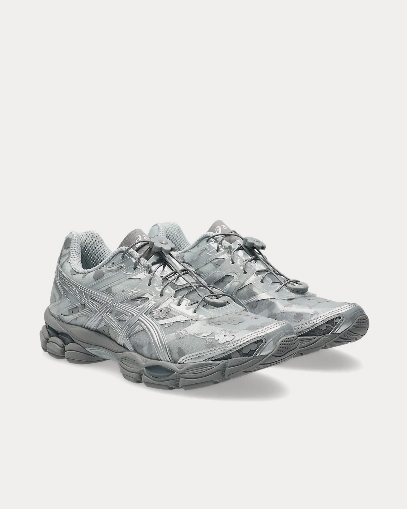 Part of ASICS’ Signature Series, this exclusive collaboration channels Cecilie Bahnsen’s “Everyday Couture” philosophy, transforming the heritage GEL-CUMULUS™ silhouette with floral-printed mesh uppers, semi-transparent layers, and a bespoke flower lace toggle for a romantic, sculptural finish.