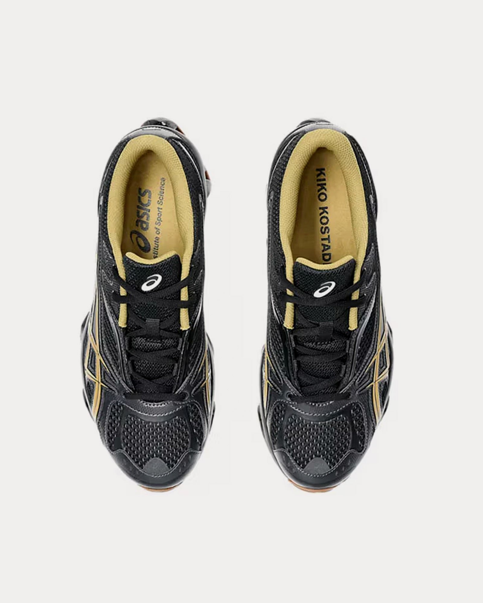 The unisex Asics x Kiko KostadinovGel-Quantum Zientzia low top sneakers in black and gold feature FF BLAST technology for cushioning, re-tuned for everyday purposes, and Scutoid GEL technology, a 3D geometry that creates better shock absorption.