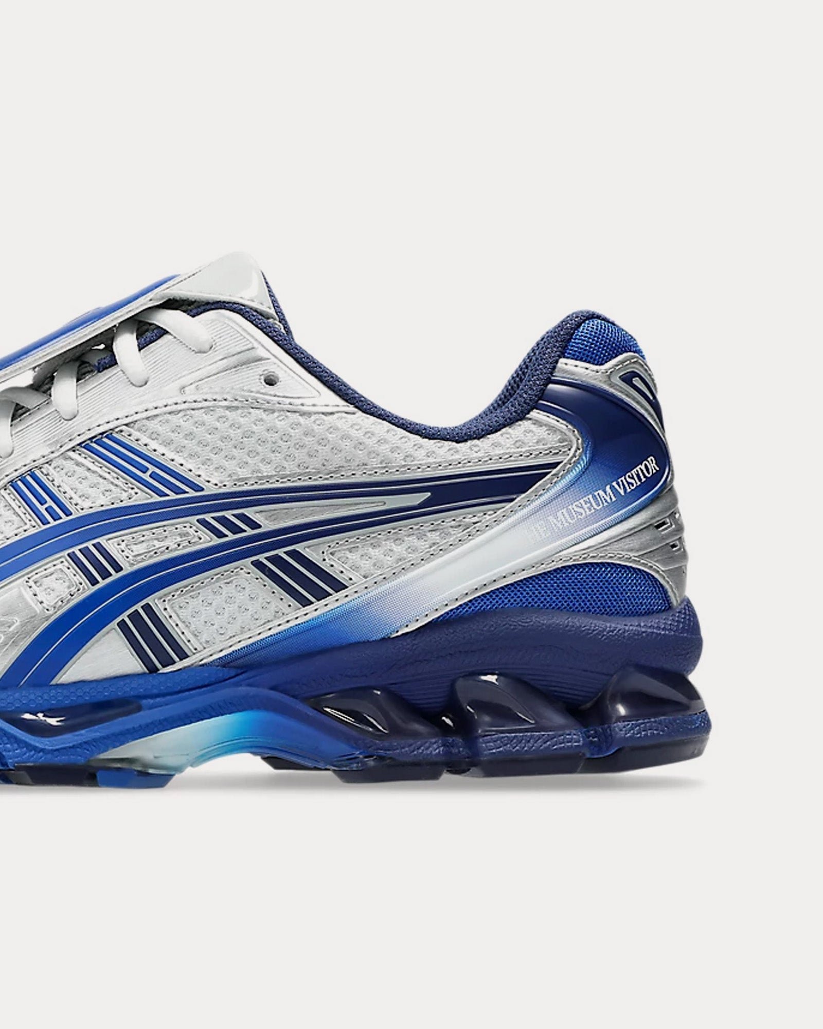 The unisex Asics x The Museum VisitorGel-Kayano 14 low top sneakers in polar shade and illusion blue updates a retro design with modern materials and components, designed by someone other than Toshikazu Kayano for the first time. This reinvigorates the brand’s signature values and improves performance, preserving the original midsole and GEL® technology cushioning, while enhancing the fit of the leather and mesh upper from 2008.